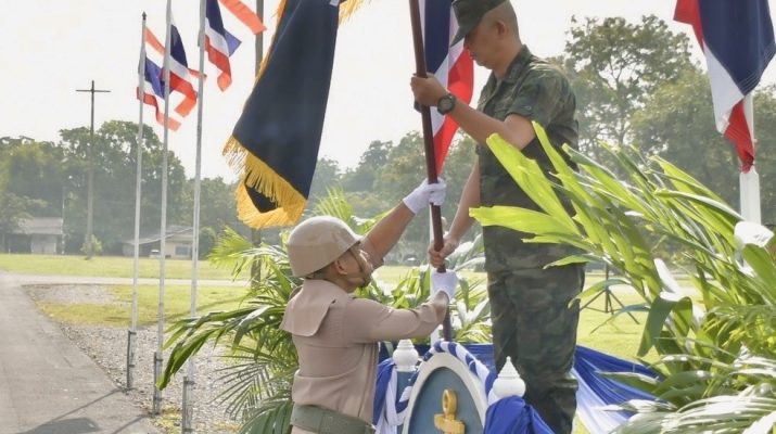 โอกาสนี้ ผบ.ศฝท.ยศ.ทร. ได้มอบธงอันเป็นสัญลักษณ์ประจำหลักสูตร และให้โอวาท เพื่อเป็นแนวทางในการฝึกอบรมฯ ความว่า “…การที่ท่านได้เข้ามารับราชการทหารเรือ นั้น นอกจากจะเป็นการปฏิบัติตามหน้าที่ของลูกผู้ชาย ตามที่กฎหมายกำหนดไว้ประการหนึ่งแล้ว ยังถือว่าท่านเป็นผู้ที่มีความเสียสละอย่างยิ่ง ที่ต้องห่างจากบ้าน และครอบครัวอันเป็นที่รัก เพื่อมารับใช้ประเทศชาติ ในห้วงการฝึกหลักสูตรทหารใหม่ ภาคสาธารณศึกษา 2 เดือน นั้น มีวัตถุประสงค์เพื่อปรับสถานะ จากพลเรือนให้เป็นทหารเรือ ที่เข้มแข็ง องอาจ สง่างาม มีเกียรติ และศักดิ์ศรี มีความพร้อมที่การปฏิบัติหน้าที่ของทหาร ตลอดระยะเวลาการฝึกจะมีความเข้มงวด จริงจัง แต่จะอยู่ภายใต้กรอบของความเมตตา ความปรารถนาดี โดยเฉพาะเรื่องความปลอดภัย ดังนั้น จึงขอให้ท่านอุทิศตน อดทน ตั้งใจฝึกหัดศึกษาหาความรู้ ในส่วนของครูที่ทำหน้าที่ฝึก ก็จะเป็นผู้ที่สร้างความเชื่อมั่นดูแลทุกท่านด้วยความมุ่งมั่นเเละตั้งใจเป็นอย่างดี ดังนั้น ขอให้ทุกท่านแจ้งกับครอบครัวได้เลยว่า ไม่ต้องห่วงกังวล ตราบใดที่ท่านอยู่ในรั้วของ
