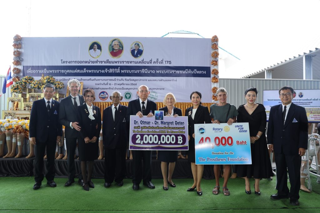 วันนี้ (วันศุกร์ที่ 21 พฤศจิกายน พ.ศ. 2568) มูลนิธิป่อเต็กตึ๊ง นำโดย นายวิชิต ชินวงศ์วรกุล รองประธานกรรมการ พร้อมด้วย นางศิริกุล โอภาสวงศ์ กรรมการและเลขาธิการ นายชาญกิจ วิทยาวรากรณ์ กรรมการ นายชูเดช เตชะไพบูลย์ ผู้ช่วยกรรมการ และนางสาวดวงชุตา ติยะพจนพรกุล ผู้ช่วยผู้จัดการฝ่ายสังคมสงเคราะห์ นำทีมแผนกส่งเสริมการศึกษาและอาชีพ ลงพื้นที่ มอบค่าพาหนะ พร้อมด้วยเครื่องอุปโภคบริโภค ประกอบด้วย เส้นหมี่ขาว วุ้นเส้น น้ำมันพืช ขนมเบ็ดเตล็ด รองเท้าฟองน้ำ บรรจุถุงผ้าดิบมูลนิธิฯ ให้แก่ผู้รับขาเทียม และช่างอาสาสมัคร ที่เข้าร่วมโครงการออกหน่วยทำขาเทียมพระราชทานเคลื่อนที่ ครั้งที่ 175 รวมจำนวน 175 คน รวมงบประมาณเป็นเงินทั้งสิ้น 158,928.75 บาท พร้อมมอบรถโดยสารขนาดเล็ก (Mini Bus) มูลค่า 2,950,000 บาท แก่มูลนิธิขาเทียม ในสมเด็จพระศรีนครินทราบรมราชชนนี เพื่อถวายเป็นพระราชกุศลแด่สมเด็จพระนางเจ้าสิริกิติ์ พระบรมราชินีนาถ พระบรมราชชนนีพันปีหลวง รวมงบประมาณดำเนินการในครั้งนี้ทั้งสิ้น 3,108,928.75 บาท (สามล้านหนึ่งแสนแปดพันเก้าร้อยยี่สิบแปดบาทเจ็ดสิบห้าสตางค์) โดยมี ศาสตราจารย์เกียรติคุณ นายแพทย์เกษม วัฒนชัย องคมนตรี และประธานกรรมการมูลนิธิขาเทียม ในสมเด็จพระศรีนครินทราบรมราชชนนี เป็นประธานในพิธี ณ โดมอเนกประสงค์ สำนักงานเทศบาลตำบลเทพารักษ์ อำเภอเมือง จังหวัดสมุทรปราการ