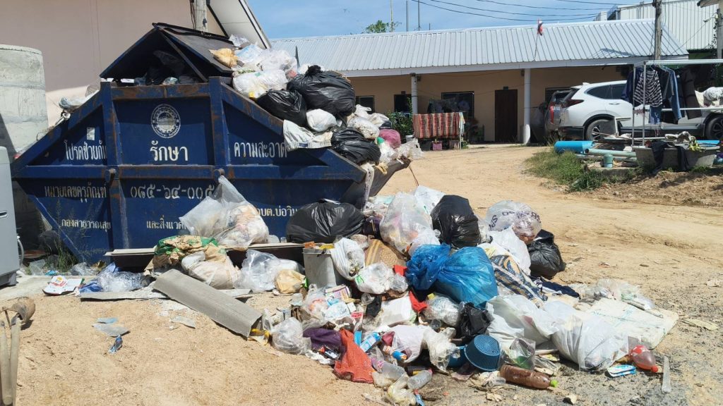 พบมีขยะอยู่เต็มถังและล้นออกมาเกลื่อนกลาด ส่งกลิ่นเหม็นคละคลุ้งไปทั่ว ขยะบางชิ้นได้เริ่มย่อยสลายเองแล้ว สร้างความเดือดร้อนให้กับชาวบ้านในพื้นที่ และเป็นภาพที่อุจาดตาของผู้ที่สัญจรไปมา บางส่วนล้นออกมาบนผิวจราจร หรือพัดปลิวไปทั่วบริเวณ ทำให้ผู้ที่ใช้รถใช้ถนนสัญจรผ่านไปมาและชาวบ้านในละแวกนั้นได้รับความเดือดร้อน เพราะขยะส่งกลิ่นเหม็นเน่าหวั่นเป็นแหล่งเพาะเชื้อโรค