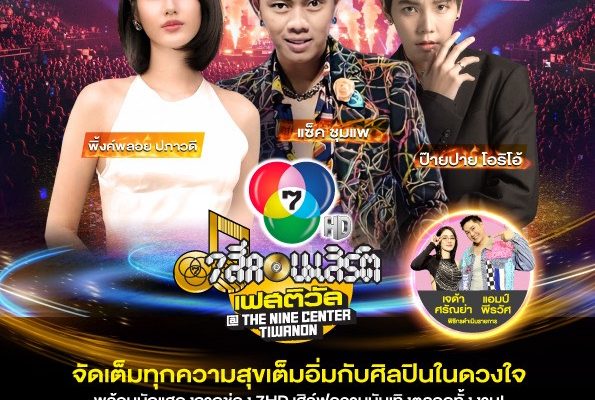 แฟน ๆ ชาวปทุมธานีเตรียมสนุกกับครั้งแรกของ 7 สีคอนเสิร์ต เฟสติวัล ที่เดอะไนน์ เซ็นเตอร์ ติวานนท์ ศูนย์การค้าในเครือเอ็ม บี เค โดย ช่อง 7HD จับมือกับ เดอะไนน์ เซ็นเตอร์ ติวานนท์ จัดฟรีคอนเสิร์ต นำศิลปินดังขวัญใจมหาชน อย่าง แซ็ค ชุมแพ เจ้าของเพลง “คำแพง” พร้อมนักร้องเสียงคุณภาพอย่าง ป๊ายปาย โอริโอ้ และ พิ้งค์พลอย ปภาวดี มาร่วมสร้างสนุก พร้อมเสริมทัพด้วย 2 พิธีกรสุดจึ้ง เจด้า ศรัณย่า และ แอมป์ พีรวัศ ที่จะมาสร้างสีสันตลอดงาน