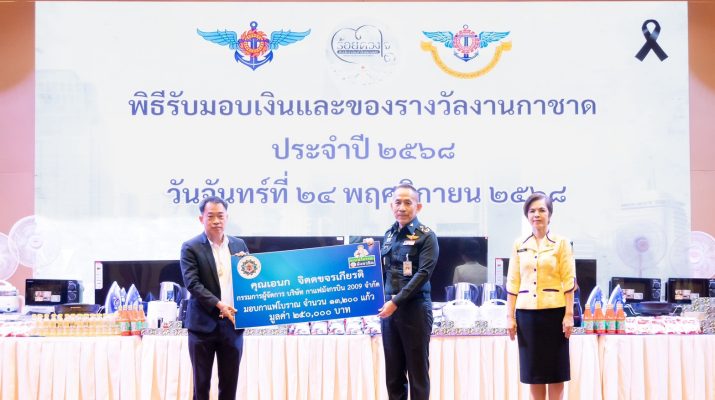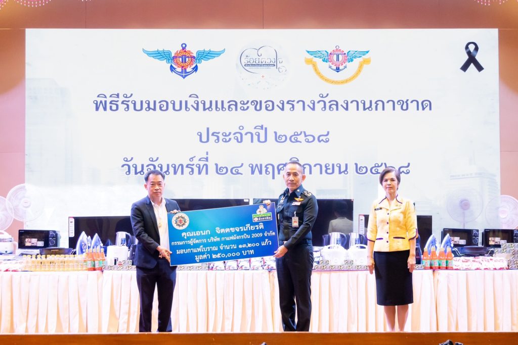 “ปลัดกห.” รับมอบเงินและของรางวัล สนับสนุนร้านสป.กห. จาก บริษัท กาแฟมังกรบิน 2009 จำกัด มอบกาแฟโบราณจำนวน 12,500 แก้ว เป็นเงิน 250,000 บาท ในงานกาชาดประจำปี 2568