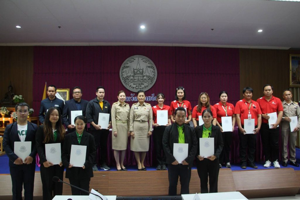 ก่อนการประชุม มีพิธีมอบเงินสนับสนุนโครงการแหล่งน้ำปี 2569 จำนวน 2 แห่ง มอบโล่โรงเรียนดนตรีไทย 1 รางวัล เกียรติบัตรองค์กรปกครองส่วนท้องถิ่นดีเด่น 2 แห่ง รวมถึงรางวัลสถานประกอบกิจการดีเด่นด้านแรงงานสัมพันธ์ มาตรฐานป้องกันยาเสพติด และโรงงานสีขาว รวม 27 แห่ง พร้อมมอบรางวัลคุณภาพแห่งชาติแก่ อำเภอโพนทอง และเกียรติบัตรผู้สนับสนุนโครงการอบรมชินนสาสมาธิ 45 ราย รวมทั้งมีการฉายสารคดีเฉลิมพระเกียรติและสรุปข่าวเด่นประจำเดือนพฤศจิกายน 2568