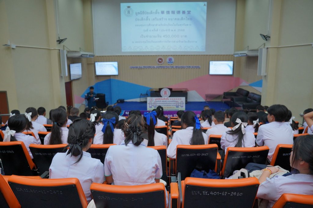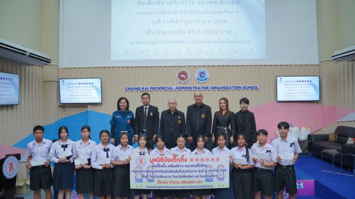 วานนี้ (วันจันทร์ที่ 24 พฤศจิกายน พ.ศ. 2568) มูลนิธิป่อเต็กตึ๊ง นำโดย นายสุรพงษ์ เตชะหรูวิจิตร กรรมการและรองเลขาธิการ พร้อมด้วย นายนิพนธ์ ลีละศิธร กรรมการ และนางสาวดวงชุตา ติยะพจนพรกุล ผู้ช่วยผู้จัดการฝ่ายสังคมสงเคราะห์ นำทีมแผนกส่งเสริมการศึกษาและอาชีพลงพื้นที่จังหวัดเชียงราย มอบทุนการศึกษาในระดับมัธยมศึกษาแก่นักเรียนในถิ่นทุรกันดาร รุ่นที่ 4 ครั้งที่ 1 ประจำปี 2568 ซึ่งเป็นการมอบทุนฯ ในรูปแบบต่อเนื่อง 3 ปี รวมจำนวน 60 ทุน รวมงบประมาณทั้งสิ้น 450,000 บาท (สี่แสนห้าหมื่นบาทถ้วน) โดยมี นายวีระยุทธ คีลาวงค์ รองผู้อำนวยการโรงเรียนองค์การบริหารส่วนจังหวัดเชียงราย พร้อมด้วยผู้บริหารสถานศึกษา อีก 20 แห่ง คณะครู อาจารย์ และผู้แทนนักเรียนจากโรงเรียน ร่วมในพิธี ณ หอประชุมโรงเรียนองค์การบริหารส่วนจังหวัดเชียงราย อำเภอเมือง จังหวัดเชียงราย