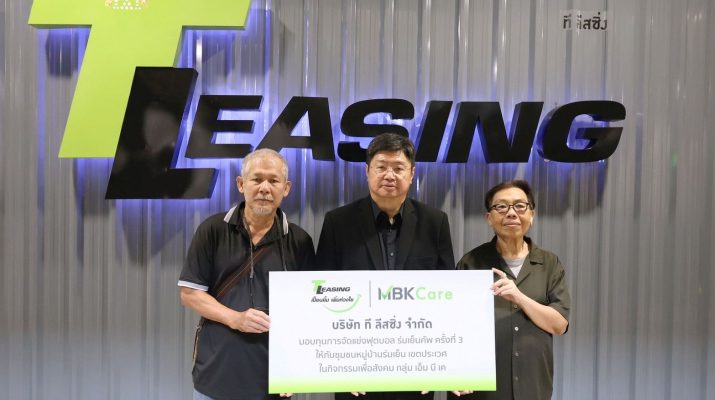 นายมงคล เพียรพิทักษ์กิจ กรรมการผู้จัดการ (ที่ 2 จากซ้าย) บริษัท ที ลีสซิ่ง จำกัด ผู้ให้บริการสินเชื่อเช่าซื้อรถจักรยานยนต์ ในเครือ เอ็ม บี เค มอบทุนสนับสนุนการแข่งขัน กีฬาฟุตบอล ร่มเย็นคัพ ครั้งที่ 3 กลุ่มเยาวชนอายุไม่เกิน 12 ปี เพื่อส่งเสริมการออกกำลังกาย การสร้างความสามัคคี และพัฒนาคุณภาพชีวิตที่ยั่งยืนให้ชาวชุมชนหมู่บ้านร่มเย็น เขตประเวศ ตามจุดมุ่งหมายของโครงการ ที ลีสซิ่ง เปื้อนยิ้ม เพิ่มห่วงใย เน้นการสนับสนุนกิจกรรมเพื่อสาธารณประโยชน์ และการยกระดับคุณภาพชีวิตของชุมชนอย่างทั่วถึง ซึ่งรายได้ทั้งหมดจากการแข่งขันมอบให้ศูนย์สุขภาพชุมชน โดยมีนายวันชัย เชื้อชุ่ม ที่ปรึกษาฟุตบอลชุมชนหมู่บ้านร่มเย็น Academy (ที่ 1 จากซ้าย) เป็นผู้รับมอบ ณ สำนักงานใหญ่ บริษัท ที ลีสซิ่ง จำกัด อาคารพาราไดซ์ เพลส ชั้น 3 เมื่อเร็วๆ นี้