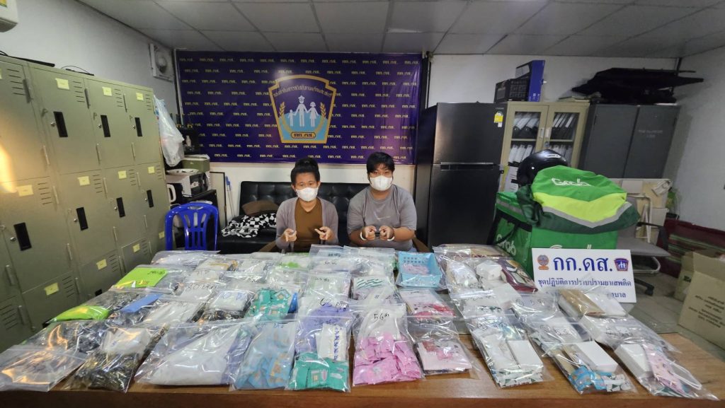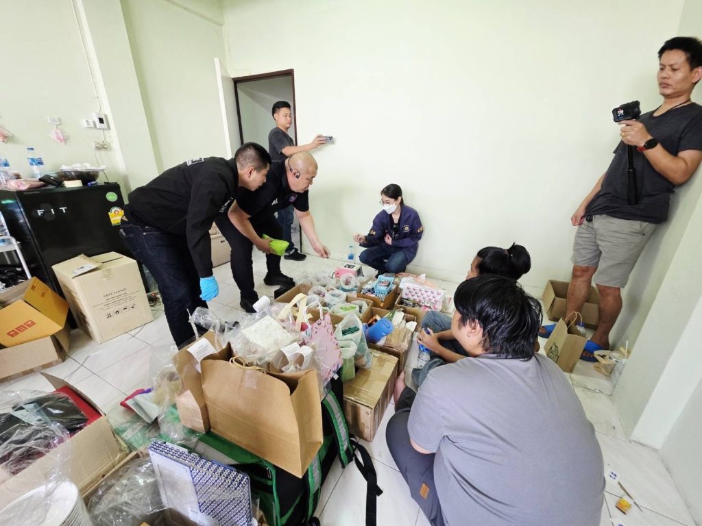 นำโดย พ.ต.ต.ยศชนินทร์ ประเสริฐโสภา พร้อมกำลังตรึงพื้นที่ก่อนพุ่งเข้าตรวจค้นบ้านเลขที่ 134/191 หมู่ 5 แขวงท่าแร้ง เขตบางเขน พบ 2 ผู้ต้องหา—นายศุภณัฐ หรือนายฟิว อายุ 29 ปี และ น.ส.ศิริประภา หรือเนย อายุ 24 ปี—กำลังแพ็กสินค้าอยู่หน้าบ้าน ถูกควบคุมตัวทันที