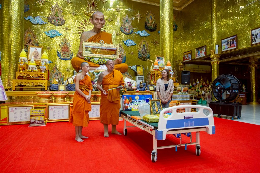 แม้จะเป็นพื้นที่ที่ห่างไกลจากที่ตั้งของวัดไผ่ล้อมพระอารามหลวง จังหวัดนครปฐม แต่พระครูปลัดสิทธิวัฒน์ หลวงพี่น้ำฝน ผู้รักษาการแทน เจ้าอาวาสฯ ยังคงขับเคลื่อนโครงการธนาคารแห่งกำลังใจ เพื่อสงเคราะห์ญาติโยมที่ประสบปัญหาในการดำเนินชีวิต หนึ่งในนั้นคือการจัดหาเตียงสำหรับผู้ป่วยให้กับผู้สูงวัย และผู้ป่วยติดเตียงซึ่งมีความจำเป็นในการพักฟื้นและรักษาตัว รวมถึงยังมีการประสานงานให้ความช่วยเหลือในด้านต่างๆ เพื่อให้วัดยังคงเป็นศูนย์กลางแห่งการช่วยเหลือและเป็นทางเลือกสำหรับประสานงานกับหน่วยงานต่างๆ ด้วย