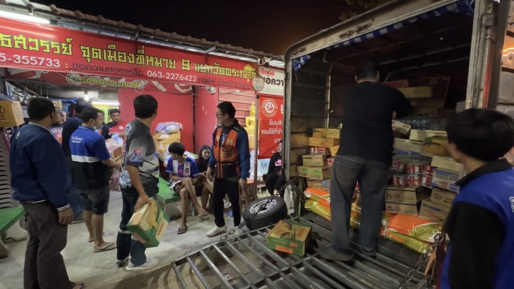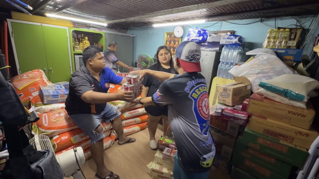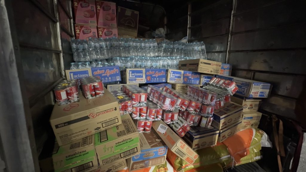 เมื่อเวลา 19.00 น. วันที่ 28 พฤศจิกายน 2568 ที่ ศูนย์ มูลนิธิพุทไธสวรรย์ จุดเมืองที่หมาย 9 แยกวัดพระญาติ อำเภอพระนครศรีอยุธยา จังหวัดพระนครศรีอยุธยา กำลังเจ้าหน้าที่อาสาสมัครกำลังเร่งขนข้าวครองเครื่องใช้ สิ่งของจำเป็นอุปโภคบริโภค จำนวนมาก 2 คันรถกระบะตู้ทึบแน่นจนล้อหลังมุดซุ้ม มีทั้ง ข้าวสาร น้ำดื่ม ปลากระป๋อง มาม่า ผ้าอนามัย สิ่งของจำเป็นโดยเฉพาะ ถุงซิบ ผ้าห่อศพ และ ถุงมือ สิ่งของช่วยเหลือพี่น้องชาวใต้