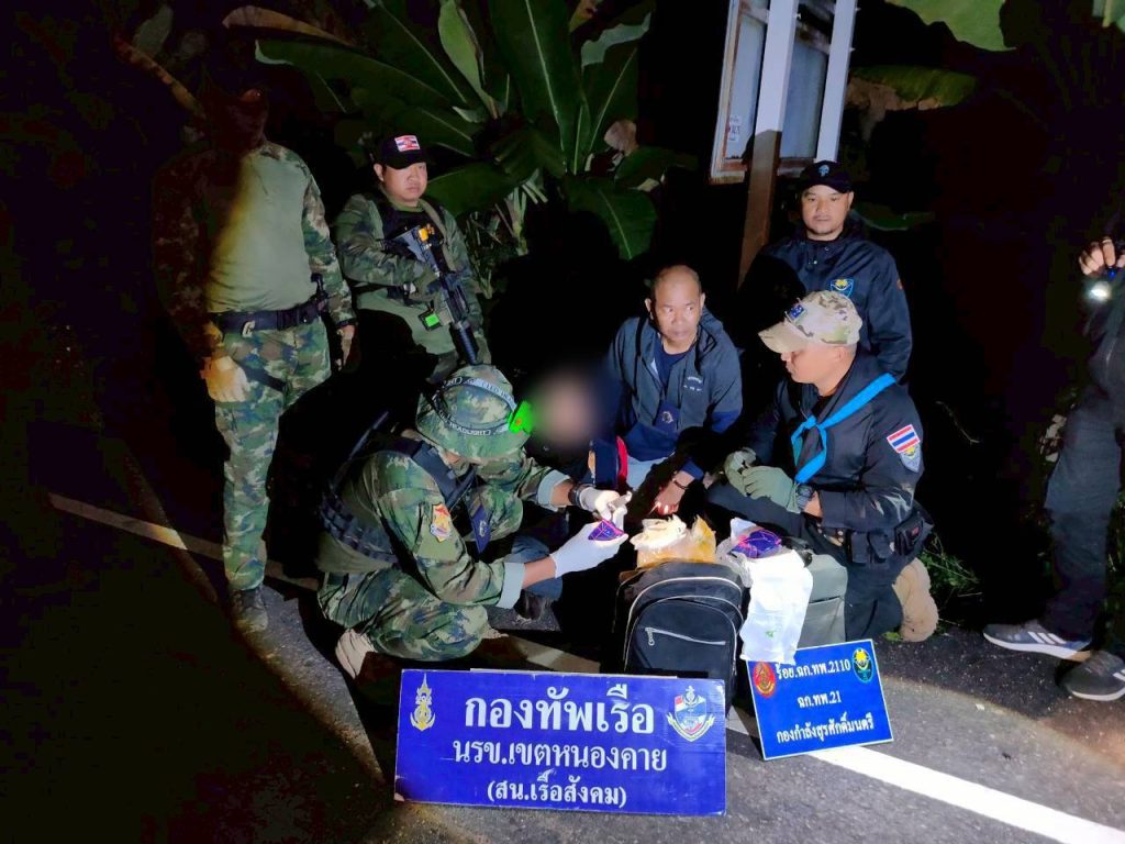 โดยสน.เรือสังคม หน่วยเรือรักษาความสงบเรียบร้อยตามลำแม่น้ำโขง (หน่วยงานหลัก) ได้รับแจ้งจากแหล่งข่าวว่ามีกระเป๋าสีดำ วางอยู่ที่ป้ายบอกทางแหล่งท่องเที่ยวคาดว่าจะมียาเสพติด บริเวณ ถนนหมายเลข 2376 เส้นทางระหว่าง อ.นายูง จ.อุดรธานี และ อ.สังคม จ.หนองคาย (พิกัด TE 075 922) จึงได้นำกำลังกองร้อยเฉพาะกิจทหารพรานที่ 2110 (ร้อย.ฉก.ทพ.2110) และ ชุดเฝ้าตรวจที่ 11 (ชฝต.ที่ 11) ทำการเฝ้าตรวจพื้นที่ดังกล่าว กระทั้งเจ้าหน้าที่ได้สังเหตุเห็นบุลคลต้องสงสัยเข้ามาเก็บกระเป๋าดังกล่าว จึงแสดงตัวข้อตรวจค้น กระทั้งสามารถจับกุมผู้ต้องหาได้ 1 ราย พร้อมของกลางยาเสพติดยาบ้า จำนวน 208,000 เม็ด