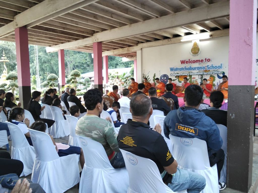โรงเรียนวัดราษฎร์บูรณะ (วัดนอก) อ.หลังสวน จัดพิธีทำบุญโรงเรียน เพื่อความเป็นสิริมงคล