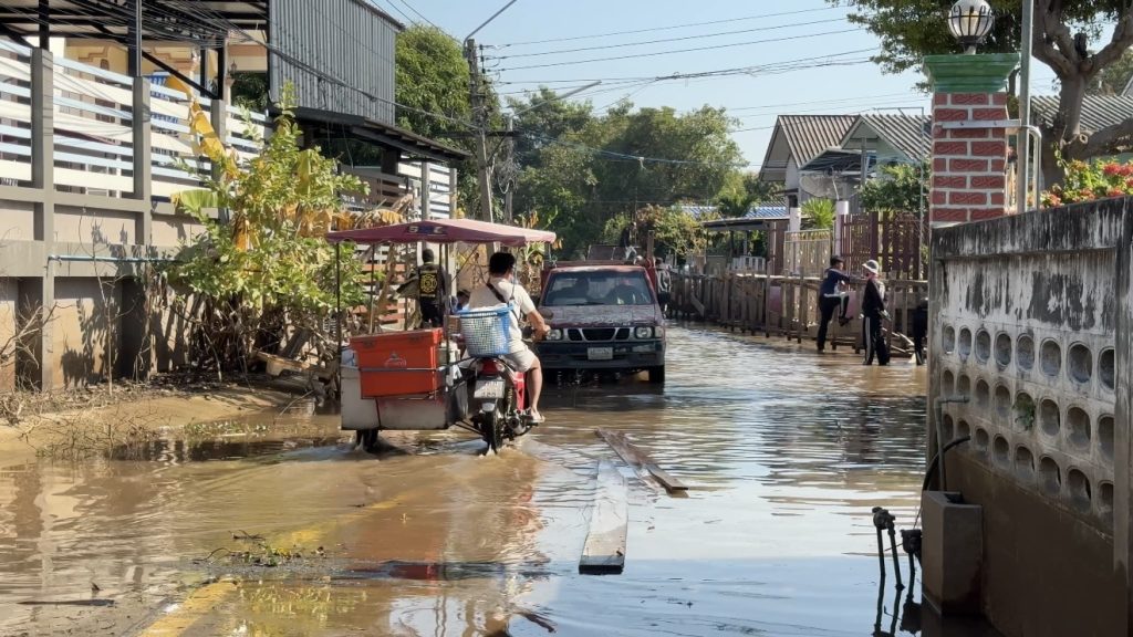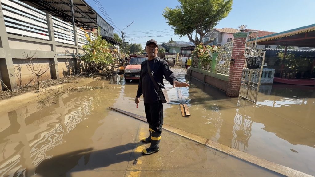 นาย สมภพ กุฎิพรรณ อายุ 50 ปี ชาวบ้าน เล่าว่า น้ำเริ่มลงมาเมื่อช่วง 2 – 3 วันที่ผ่านมา รถยนต์ รถจักรยานยนต์ สามารถสัญจรไปมาได้แล้ว แต่ปีนี้ถือว่าน้ำท่วมนานมาก 4 เดือน เจ้าหน้าที่เทศบาลได้มาเร่งรื้อถอนสะพานไม้เพราะตอนนี้เดินไม่ได้แล้ว น้ำลดสะพานเริ่มโยก รถเข้าได้แล้ว เจ้าหน้าที่เร่งอำนวยความสะดวกให้เช้าบ้าน ปีนี้ถือว่านานมาก น้ำท่วมก็เหมือนทุกครั้งแต่ท่วมนาน มาวันนี้ถนนเริ่มลดลง น้ำค่อยๆลดลง ภาวนาให้ลดลงเรื่อยๆ บ้านริมน้ำยังท่วมใต้ถุน ริมน้ำยังใช้เรือคาดหลังปีใหม่ถึงจะท่วมแห้ง