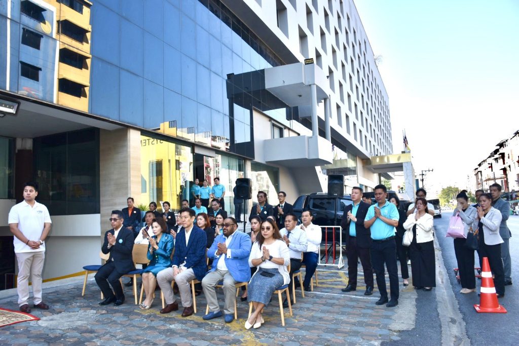 ช่วงเช้าเริ่มต้นด้วย พิธีบวงสรวงศาลและองค์พระพรหมหน้าโรงแรม เพื่อความร่มเย็นเป็นสุข ตามด้วยพิธีทำบุญเลี้ยงพระ เพื่อความเป็นสิริมงคลแก่กิจการ ก่อนเข้าสู่พิธีเปิดโรงแรมอย่างเป็นทางการ ภายในงานได้รับเกียรติจากผู้บริหารเข้าร่วม ประกอบด้วย คุณพรทิพย์ ปัญญาสกุลวงศ์ ประธานกรรมการบริษัท, คุณประวีณ ปัญญาสกุลวงศ์ กรรมการบริหาร, คุณประวิตร ปัญญาสกุลวงศ์ กรรมการผู้จัดการ, Mr.Jihong An ผู้อำนวยการบริหาร, คุณสาธิต หมันสุวรรณ ผู้อำนวยการฝ่ายปฏิบัติการ, Mr.Ramneek Lamba ผู้จัดการทั่วไป โรงแรมครอสไวบ์ กรุงเทพ ศรีนครินทร์ ร่วมพิธีเปิดในครั้งนี้ พร้อมด้วยแขกผู้มีเกียรติอีกหลายท่านร่วมแสดงความยินดีอย่างคับคั่ง