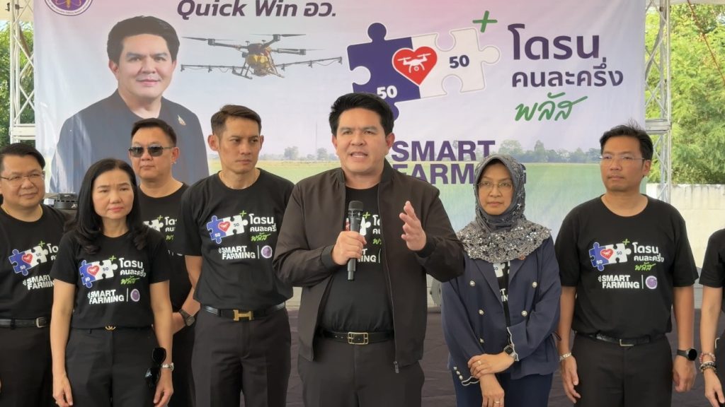 สุรศักดิ์ นำ อว.คิกออฟ โครงการ “ โดรนคนละครึ่งพลัส สู่สมาร์ทฟาร์มมิ่ง ” นำร่อง 1 แสนไร่ช่วยเกษตรกร ชาวนาใน 3 จังหวัด “ อยุธยา – อ่างทอง – ปทุมธานี ” กระทรวง อว.ช่วยจ่ายค่าบริการโดรนเพื่อหว่าน ใส่ปุ๋ยหรือพ่นยาในที่นาไร่ละ 40 บาทแถมตรวจวัดคุณภาพดินฟรีให้กับเกษตรกร เปิดให้ลงทะเบียนแล้วสำหรับผู้มีที่นาไม่เกิน 30 ไร่ ไม่ว่าจะเป็นเจ้าของนาหรือผู้เช่า ตั้งแต่วันนี้ถึง 31 ม.ค.69