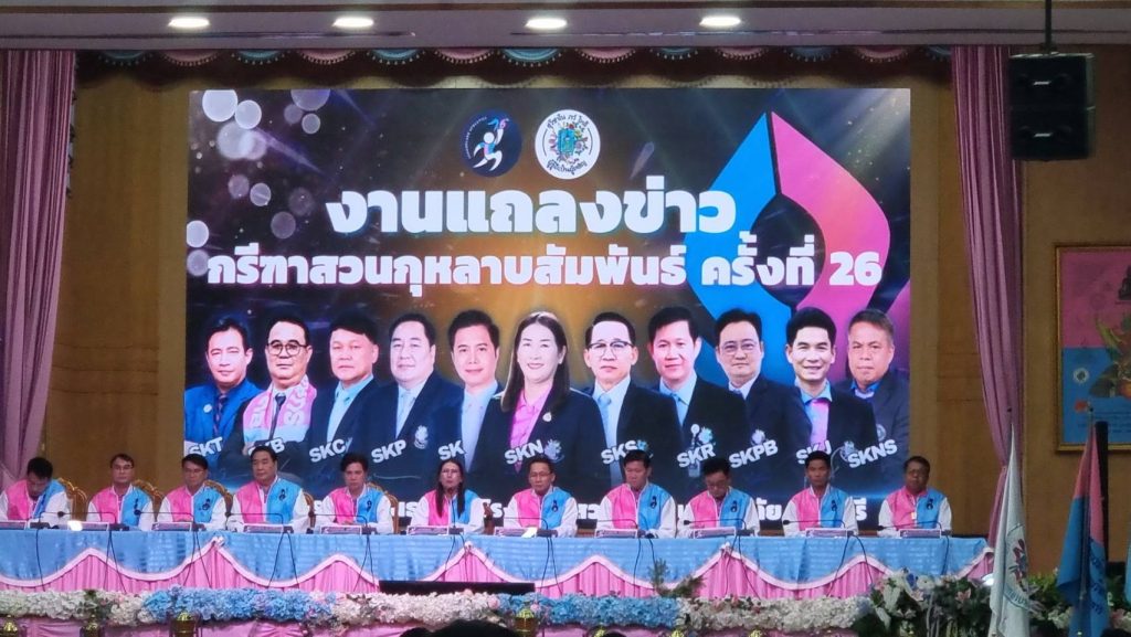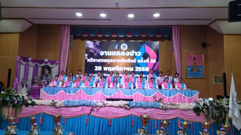 นนทบุรี : เมื่อเวลา 14.30 น.วันที่ 28 พ.ย.68 ที่หอประชุมสิรินธราลัย โรงเรียนสวนกุหลาบวิทยาลัยนนทบุรี ถนนติวานนท์ ต.ปากเกร็ด อ.ปากเกร็ด จ.นนทบุรี นางจรุญ จารุสาร ผอ.รร.สวนกุหลาบวิทยาลัยนนทบุรี เจ้าภาพการจัดการแข่งขัน และผู้อำนวยการโรงเรียนสวนกุหลาบวิทยาลัยจำนวน 10 สวน ร่วมกันแถลงข่าวการจัดการแข่งขันกรีฑาสวนกุหลาบสัมพันธ์ 11 สวน ครั้งที่ 26 ในระหว่างวันที่ 11-12 ธ.ค.68 ที่สนามกีฬากลาง อ.เมือง จ.นนทบุรี ภายใต้แนวคิด “ 11 สวนกุหลาบ คุณค่าอันหลากหลาย ที่มีมุ่งหมายเดียวกัน”