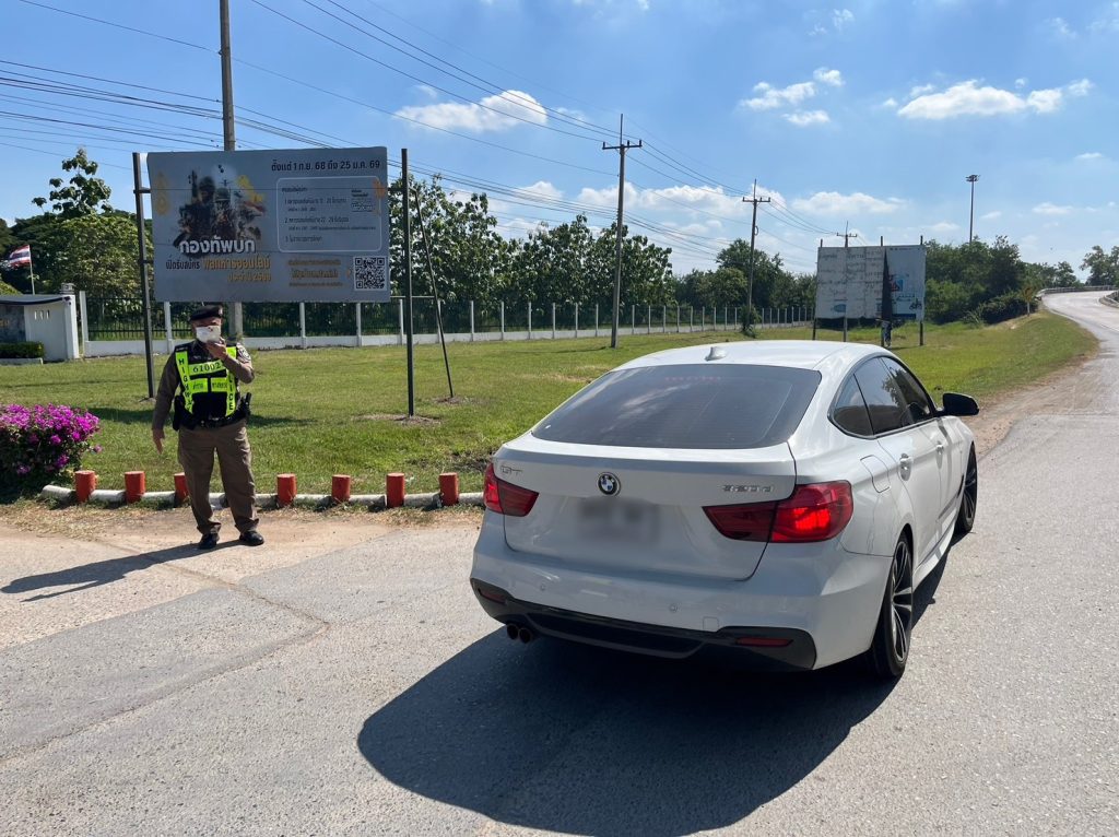 พบรถยนต์เก๋ง ยี่ห้อ BMW สีขาว ติดแผ่นป้ายทะเบียนจ.กรุงเทพมหานคร ขับขี่มามุ่งหน้าเข้า