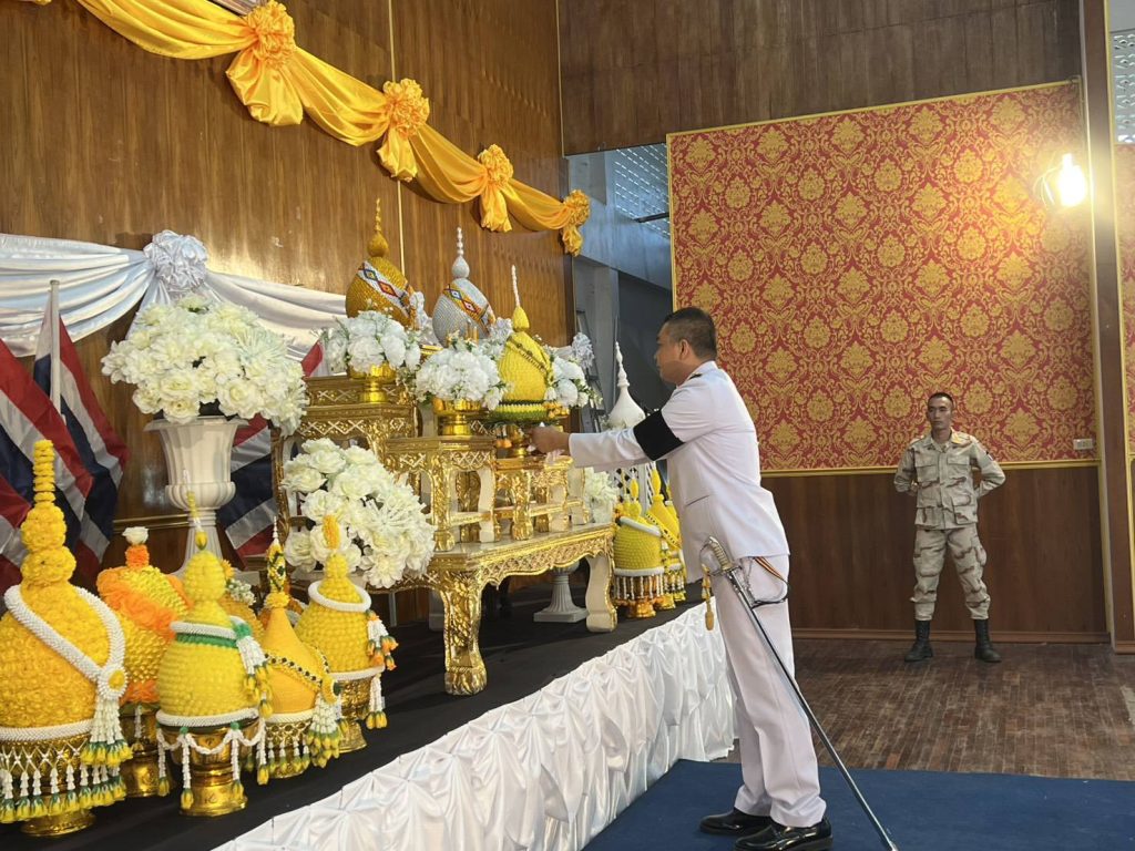 ในพิธีวางพุ่มดอกไม้ถวายบังคม โดยมี นายธันย์ปวัฒน์ ภูริวัฒนเมธา นายอำเภอพบพระ เป็นประธาน พร้อมด้วย หัวหน้าส่วนราชการ ข้าราชการตำรวจ ทหาร รัฐวิสาหกิจ ผู้นำชุมชน เยาวชนและประชาชนจิตอาสา เข้าร่วมพิธีอย่างพร้อมเพรียงกัน ณ หอประชุมที่ว่าการอำเภอพบพระ จังหวัดตาก.