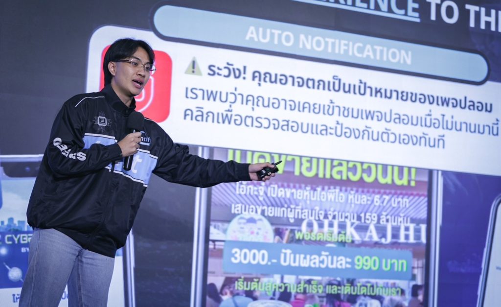 ทีม Scamtify – นวัตกรรม “PageSeeker – ZERO” โซลูชัน AI ที่พัฒนาขึ้นเพื่อค้นหาและตรวจจับเพจปลอมบนโซเชียลมีเดียแบบอัตโนมัติ เมื่อพบความเสี่ยง ระบบจะส่งการแจ้งเตือนไปยังลูกค้าทรูทันทีที่มีการ “เข้าถึงหรือมีปฏิสัมพันธ์” กับเพจต้องสงสัย พร้อมสรุปรายงานความเสี่ยงและสถานะความปลอดภัยจากมิจฉาชีพออนไลน์ให้รายสัปดาห์ เพื่อช่วยติดตามและป้องกันภัยได้อย่างต่อเนื่อง นวัตกรรมนี้ถูกคิดค้นเพื่อแก้ปัญหาคนไทย โดยเฉพาะผู้สูงอายุ ที่มักตกเป็นเหยื่อเพจปลอมบน Facebook และช่องทางออนไลน์ต่างๆ ทีมตั้งเป้าช่วยลดความสูญเสียจากมิจฉาชีพออนไลน์ โดยสามารถปกป้องผู้ใช้งานได้กว่า 360,000 คน หรือคิดเป็น 3% ของเหยื่อบน Facebook ตามสถิติในปัจจุบัน ภายในปีแรกของการใช้งาน