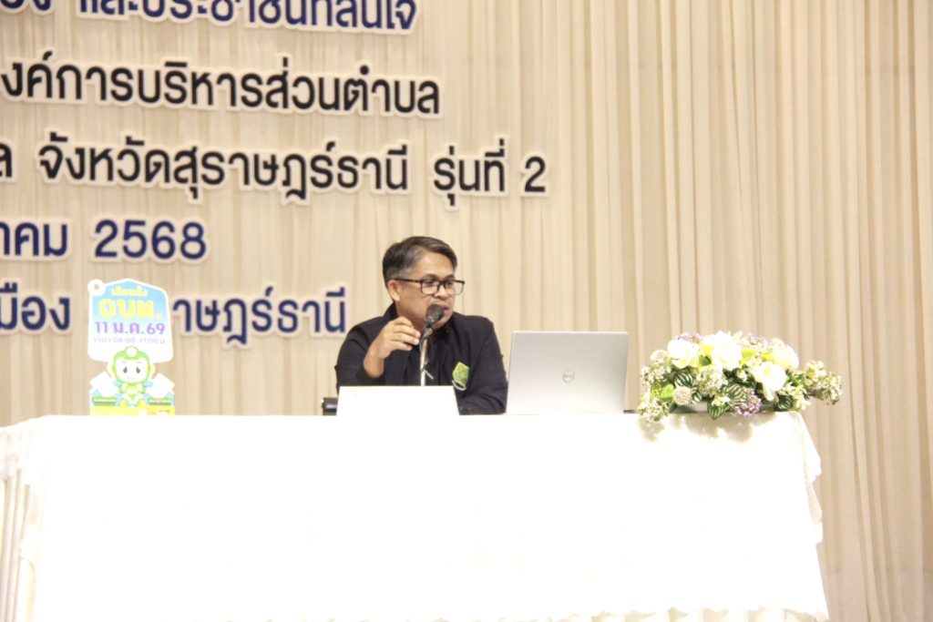 โดยในวันนี้มีการบรรยายชี้แจงสาระสำคัญของกฎหมายเลือกตั้ง การให้ความรู้เกี่ยวกับพระราชบัญญัติการเลือกตั้งสมาชิกสภาท้องถิ่นหรือผู้บริหารท้องถิ่น พ.ศ. 2562 พร้อมทั้งอธิบายวิธีการหาเสียงและลักษณะต้องห้ามในการหาเสียง เพื่อให้ผู้สมัครหาเสียงอย่างถูกต้องตามกฎหมาย นอกจากนี้ยังมีการบรรยายเกี่ยวกับขั้นตอนการยื่นบัญชีค่าใช้จ่ายในการเลือกตั้ง เพื่อให้ผู้สมัครจัดทำบัญชีรายรับ–รายจ่ายอย่างโปร่งใสและตรวจสอบได้ เป็นการยกระดับความรู้และความเข้าใจของทุกฝ่าย เพื่อให้การเลือกตั้งองค์การบริหารส่วนตำบลในวันที่ 11 มกราคม 2569 ในพื้นที่จังหวัดสุราษฎร์ธานี (ยกเว้นอำเภอเกาะสมุย เกาะพะงัน) จำนวน