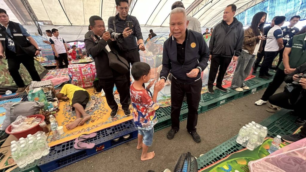 เพื่อติดตามสถานการณ์และการให้ความช่วยเหลือในพื้นที่ โดยรับฟังรายงานสถานการณ์ภาพรวมจาก นายปิยะ ปิจนำ ผู้ว่าราชการจังหวัดบุรีรัมย์ ซึ่งได้สรุปผลการดำเนินงานด้านการบริหารจัดการศูนย์พักพิง การดูแลความปลอดภัย การให้บริการด้านสาธารณสุข ตลอดจนการบูรณาการความร่วมมือของหน่วยงานที่เกี่ยวข้องในการดูแลความเป็นอยู่ของผู้อพยพอย่างใกล้ชิด