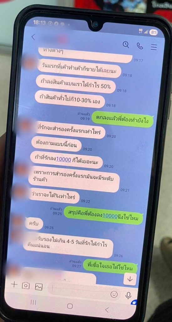 เคสที่ 2 ศูนย์ ACSC ประสานตำรวจ สภ.สามพราน เข้าช่วยเหลือผู้เสียหายเป็นหญิง วัย 50 ปี ทันทีหลังพบว่ามีการโอนเงินไปยังบัญชีบริษัทแห่งหนึ่งซึ่งเป็นบัญชีม้า (รับโอนเงินจากการหลอกลวงโดยไม่ได้มีการทำธุรกิจจริง) ก่อนจะทราบว่าเมื่อวันที่ 14 พ.ย.2568 ได้มีคนร้ายใช้ไลน์ ชื่อ “บอม เบ 100” ทักหาผู้เสียหาย พูดคุยลักษณะหลอกให้รัก โดยไม่มีการเปิดกล้องหรือพบตัวกัน กระทั่งโน้มน้าวจนผู้เสียหายเชื่อใจ คนร้ายได้ชักชวนให้ลงทุนทำธุรกิจในลักษณะขายของออนไลน์ โดยอ้างว่าจะได้ผลตอบแทน 20% จากเงินที่ลงทุนไป ซึ่งผู้เสียหายได้โอนเงินลงทุนไป จำนวน 3 ครั้ง ยอดรวม 140,000 บาท