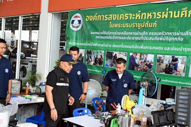 ทั้งนี้ผู้อำนวยการองค์การฯ และคณะ ยังได้ตรวจเยี่ยมจุดออกหน่วยบริการของกองฝึกอบรมและพัฒนาฝีมือ ฝ่ายอาชีวสงเคราะห์ ร่วมกับสำนักงานสงเคราะห์ทหารผ่านศึกเขตสงขลา ได้ออกหน่วยบริการซ่อมเครื่องใช้ไฟฟ้าภายในบ้าน ซ่อมเครื่องยนต์เล็กเพื่อการเกษตร และซ่อมบำรุงจักรยานยนต์ แก่ทหารผ่านศึก ครอบครัวทหารผ่านศึก และทหารนอกประจำการ ร่วมถึงพี่น้องประชาชน ที่ได้รับความเดือดร้อนจากสถานการณ์อุทกภัย ที่ดูโฮม หาดใหญ่ พร้อมเยี่ยมเยียน ส.อ.ประพันธ์ ชุมนุ้ย ทหารผ่านศึกนอกประจำการ บัตรชั้นที่ 4 อายุ 60 ปี ที่บ้านพักในพื้นที่ ต.คอหงส์ อ.หาดใหญ่ จ.สงขลา และพบปะเยี่ยมเยียนทหารผ่านศึก และครอบครัวทหารผ่านศึก ที่ได้รับความเดือดร้อนจากสถานการณ์อุทกภัย จำนวน 300 คน ที่วัดเลียบ อำเภอคลองหอยโข่ง จังหวัดสงขลา