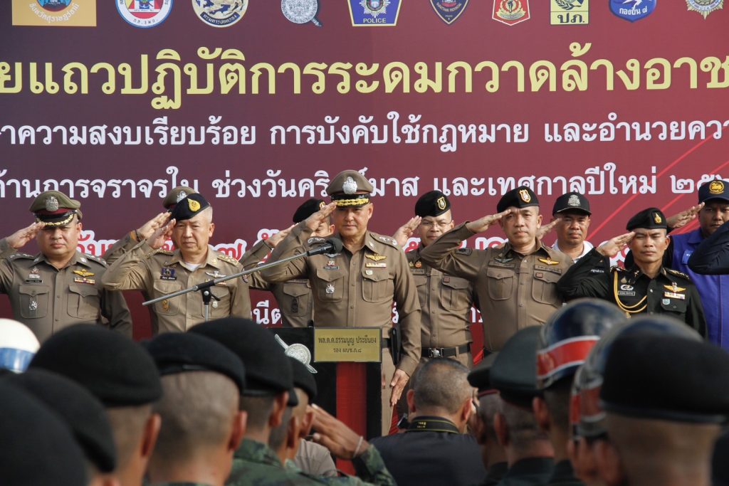 พล.ต.ต.ธรรมนูญ กล่าวว่า การปล่อยแถวระดมกวาดล้างอาชญากรรมช่วงวันคริสต์มาส และวันหยุดยาวเทศกาลปีใหม่ 2569 ในส่วงของจังหวัดสุราษฎร์ธานี ซึ่งจะมีประชาชนเดินทางกลับภูมิลำเนา และเดินทางมาท่องเที่ยวตามสถานที่ต่างๆ เป็นจำนวนมากจึงขอให้เจ้าหน้าที่ทุกท่าน มีความมุ่งมั่น ตั้งใจและปฏิบัติหน้าที่อย่างเข้มแข็ง