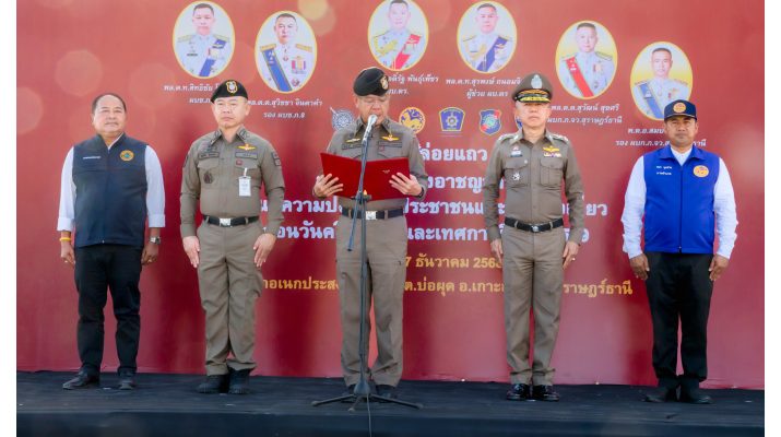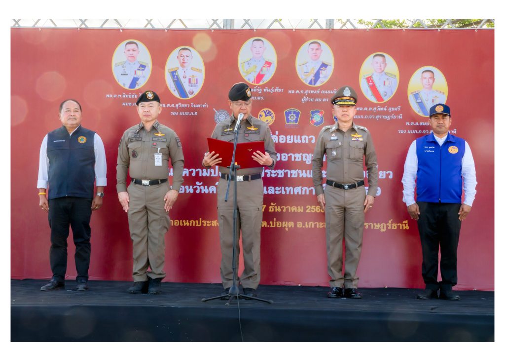 เมื่อเวลา 16.00 น.วันที่ 17 ธ.ค.68 ที่บริเวณพรุเฉวง ต.บ่อผุด อ.เกาะสมุย จ.สุราษฎร์ธานี พล.ต.ท.สุรพงษ์ ถนอมจิตร ผู้ช่วย ผบ.ตร. พล.ต.ต.สุวิชชา จินดาคำ รอง ผบช.ภ.8 พล.ต.ต.สุวัฒน์ สุขศรี ผบก.ภ.จว.สุราษฎร์ธานี พ.ต.อ.สมบัติ ฉ่ำแสง รอง ผบก.ภ.จว.สุราษฎร์ธานี ร่วมปล่อยแถวระดมกวาดล้างอาชญากรรมช่วงวันคริสต์มาส และวันหยุดยาวเทศกาลปีใหม่ 2569 ระหว่างวันที่ 17-25 ธ.ค.68 โดยมีเจ้าหน้าที่ตำรวจในสังกัด,ฝ่ายปกครอง,ผู้แทนส่วนราชการ,หน่วยงานที่เกี่ยวข้อง,อาสมัคร,หน่วยกู้ภัย มูลนิธิเข้าร่วมกว่า 150 นาย