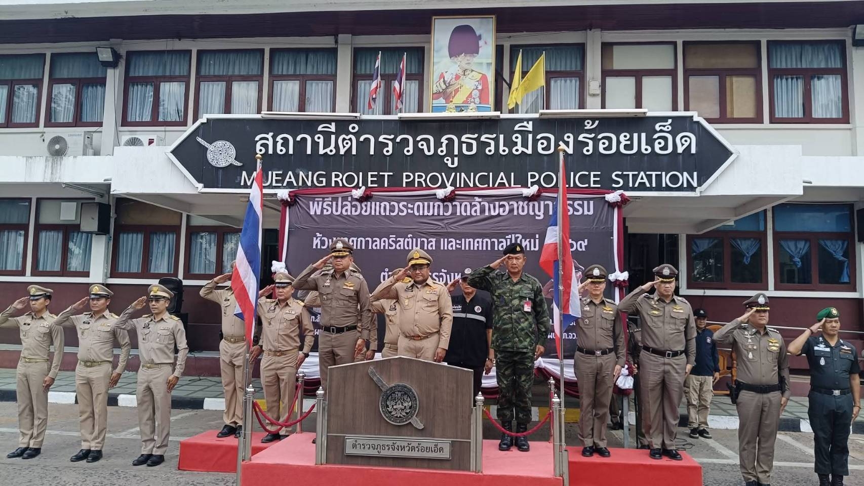 นายชัชวาลย์ เบญจสิริวงศ์ ผู้ว่าราชการจังหวัดร้อยเอ็ด เป็นประธานในพิธีปล่อยแถวระดมกวาดล้างอาชญากรรม ช่วงเทศกาลวันคริสต์มาสและปีใหม่ ประจำปี 2568