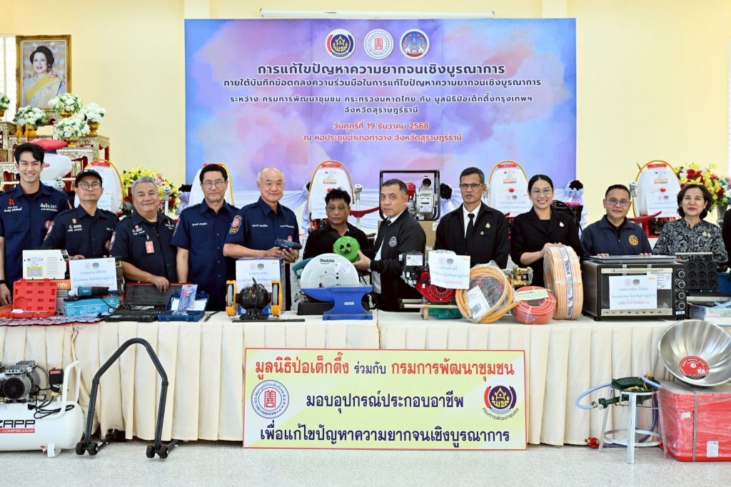 มูลนิธิป่อเต็กตึ๊ง เดินสายสร้างอาชีพ สร้างชีวิตอย่างยั่งยืนต่อเนื่อง มอบอุปกรณ์ประกอบอาชีพ ให้แก่ครัวเรือนยากจนในพื้นที่จังหวัดสุราษฎร์ธานี รวมมูลค่ากว่า 6.9 แสนบาท พร้อมนำหน่วยแพทย์เคลื่อนที่ออกบริการในพื้นที่ฟรี ณ บริเวณหอประชุมที่ว่าการอำเภอท่าฉาง จังหวัดสุราษฎร์ธานี