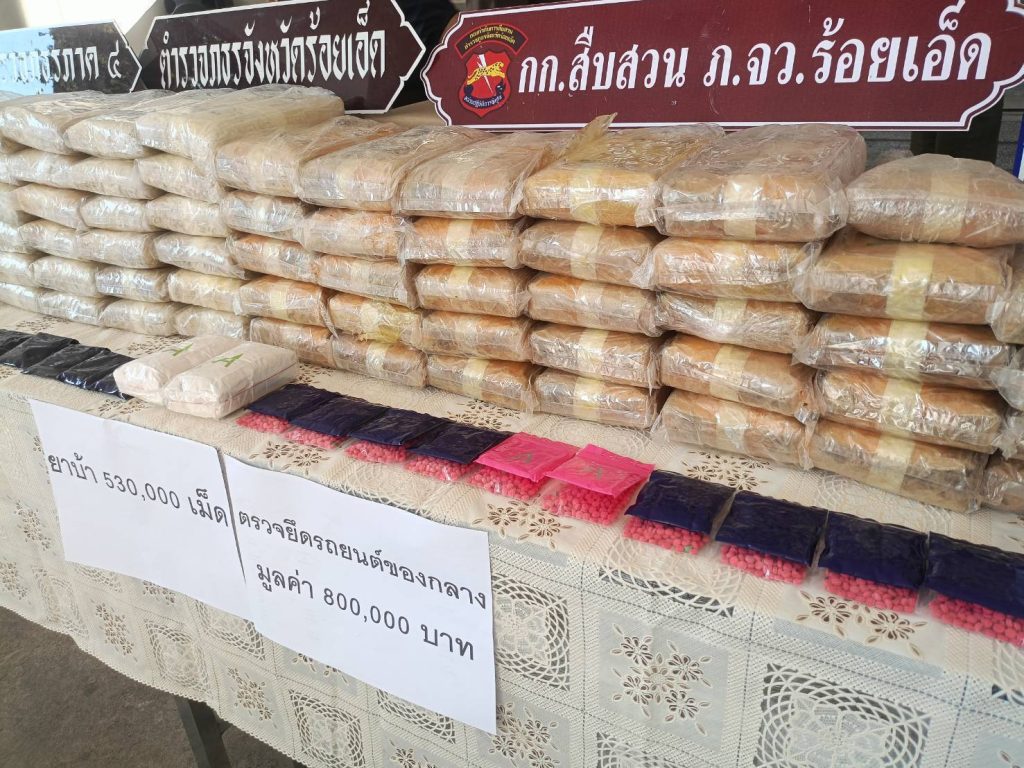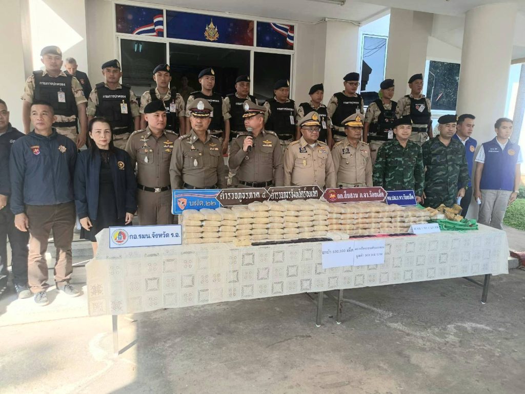 ร้อยเอ็ดแถลงข่าวจับกุมเครือข่ายลักลอบลำเลียงยาเสพติดรายสำคัญ ยึดยาบ้ากว่า 530,000 เม็ด พร้อมรถยนต์ของกลาง มุ่งตัดวงจรยาเสพติดอย่างเด็ดขาด