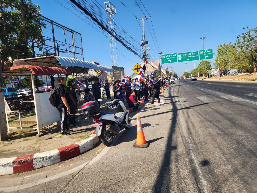 ชาวบ้านที่อยู่ในตัวอำเภอประโคนชัย กว่า 200 คนได้ออกมาถือธงชาติไทยสะบัดอยู่ริมถนนสาย 24 โชคชัย-เดชอุดม เพื่อต้องการแสดงเชิงสัญลักษณ์รับทหารกล้าขวัญใจชาวอำเภอประโคนชัย และชาวไทยทุกคน