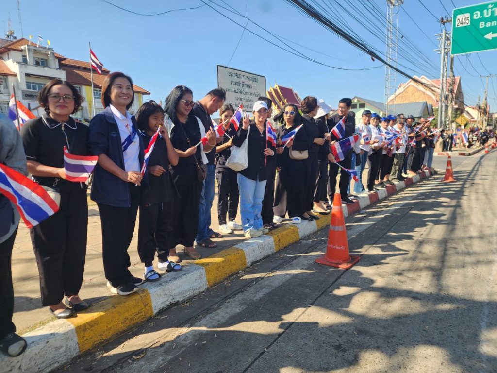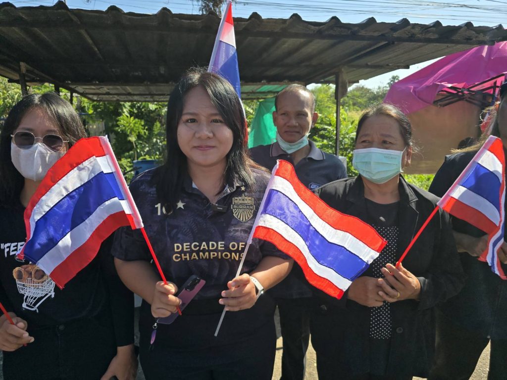 บุรีรัมย์ ชาวบ้านสะบัดธงไทยรอรับร่างจ่าเริง ชาวสุรินทร์เดินทางมาขอบคุณ