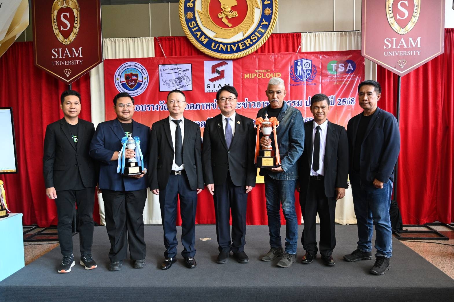 วันที่ 24 ธ.ค.2568 ที่ มหาวิทยาลัยสยาม ถนนเพชรเกษม แขวงบางหว้า เขตภาษีเจริญ กรุงเทพมหานคร นายศิโรจน์ มิ่งขวัญ นายกสมาคมนักข่าวอาชญากรรมแห่งประเทศไทย เปิดเผยว่า ในพิธีมอบรางวัลสุดยอดข่าวอาชญากรรม ประจำปี 2568 และรางวัลสุดยอดนักข่าวป้ายแดง ประจำปี 2568 มี ดร.พรชัย มงคลวนิช อธิการบดีมหาวิทยาลัยสยาม เป็นประธานในพิธี มี ศูนย์ฝึกอบรมรักษาความปลอดภัย เอชไอพี คลาวด์ สนับสนุนการจัดงาน มีคุณอรวรรณ บุณยธาดา ผู้อำนวยการศูนย์ฝึกอบรมนักข่าววิจัยและพัฒนา ภายใต้สมาคมนักข่าวอาชญากรรมแห่งประเทศไทย เป็นประธานคณะกรรมการตัดสิน