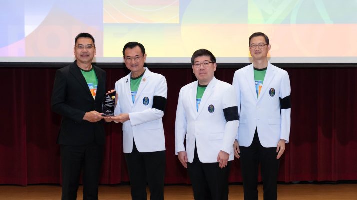 เอไอเอ ประเทศไทย โดย นายสุขวัฒน์ ประเสริฐยิ่ง (ซ้ายสุด) ประธานเจ้าหน้าที่บริหาร บลจ. เอไอเอ (ประเทศไทย) เป็นตัวแทนร่วมรับโล่เกียรติคุณจาก ศ.นพ.อภิชาติ อัศวมงคลกุล (ที่ 3 จากขวา) คณบดีคณะแพทยศาสตร์ศิริราชพยาบาล มหาวิทยาลัยมหิดล ประธานคณะกรรมการอำนวยการจัดโครงการ และประธานในพิธี เพื่อเป็นการแทนคำขอบคุณในฐานะผู้ให้การสนับสนุนมอบความคุ้มครองและสนับสนุนกรมธรรม์ประกันอุบัติเหตุกลุ่มฟรีแก่ประชาชนจาก 77 จังหวัดทั่วไทย ที่ลงทะเบียนเข้าร่วม “โครงการแสงนำใจไทยทั้งชาติ เดิน วิ่ง ปั่น ป้องกันอัมพาต ครั้งที่ 11 เฉลิมพระเกียรติ” จำนวน 359,885 กรมธรรม์ ถือเป็นการประกาศความสำเร็จในการสร้างความตระหนักรู้โรคหลอดเลือดสมอง พร้อมเน้นย้ำว่าการออกกำลังกายมีความสำคัญต่อสุขภาพและช่วยให้ห่างไกลจากโรค ต่อยอดสู่การมีสมองที่ดี สำหรับปีนี้จัดขึ้นเป็นครั้งที่ 11 ในหัวข้อ “ออกกำลังเป็นนิสัย ห่างไกลสโตรค (No Stop No Stroke)” ซึ่งโครงการดังกล่าวได้รับการสนับสนุนจากภาครัฐและภาคเอกชนร่วมกันจัดโครงการจนสำเร็จลุล่วงไปด้วยดี ในการนี้ ยังได้รับเกียรติตาก ศ.ดร.นพ.ยงยุทธ ศิริวัฒนอักษร ผู้อำนวยการโรงพยาบาลศิริราช และ รศ.นพ.ยงชัย นิละนนท์ ประธานศูนย์โรคหลอดเลือดสมองศิริราชและประธานคณะกรรมการดำเนินงาน ให้เกียรติร่วมงาน ณ อาคารศรีสวรินทิรา คณะแพทยศาสตร์ศิริราชพยาบาล