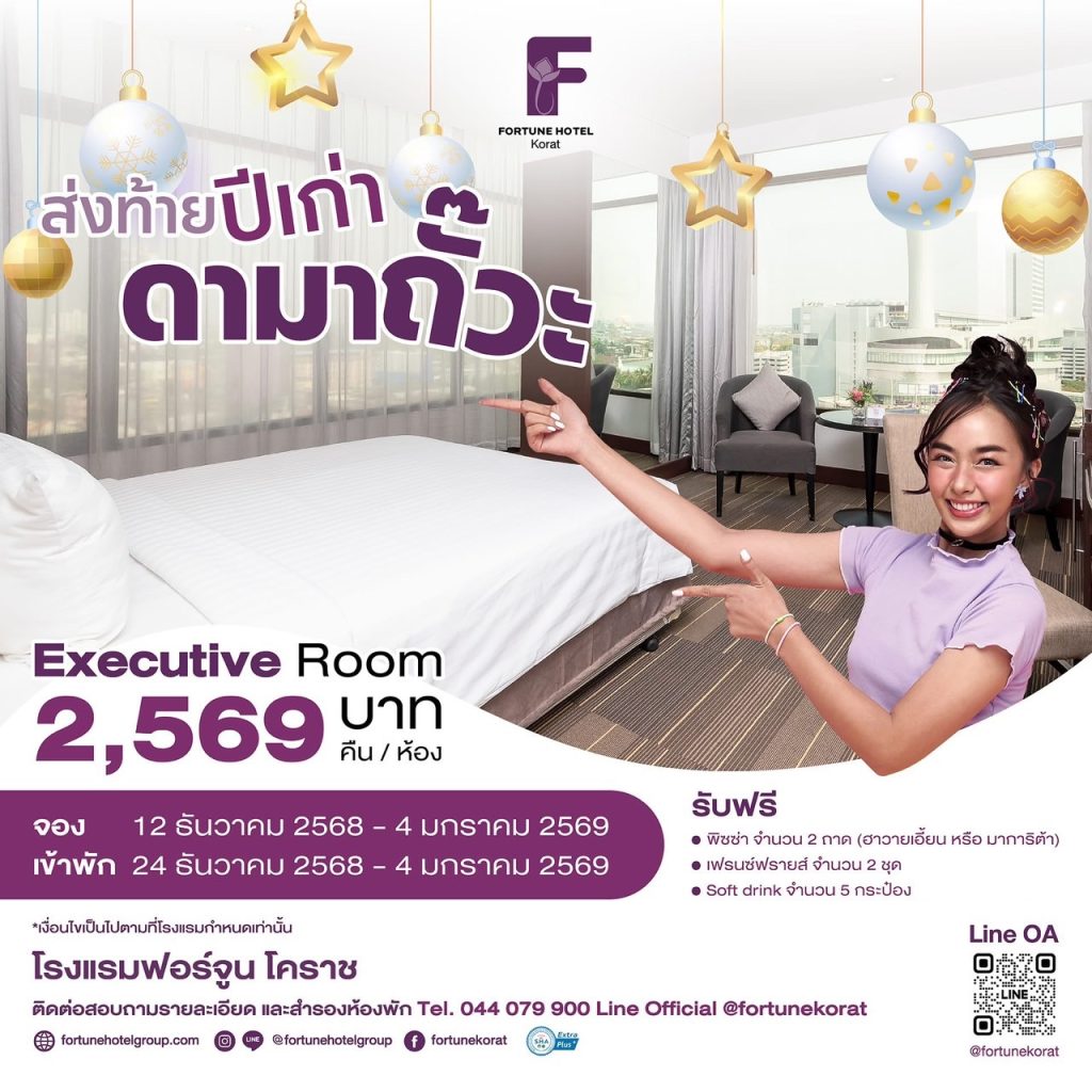 ต่อด้วย โรงแรมฟอร์จูนโคราช Fortune Hotel Korat จัดโปรโมชั่น “ส่งท้ายปีเก่าดามาถ๊วะ”- ห้องพัก Executive ราคา 2,569 บาท/คืน พร้อมสิทธิพิเศษ: