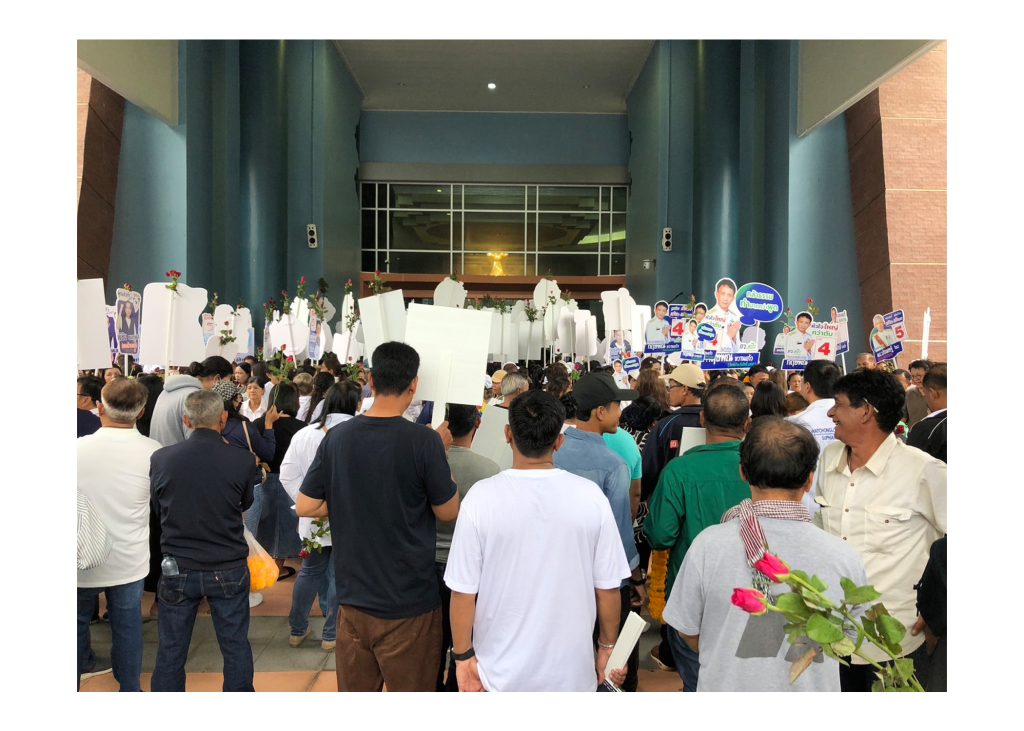 ในส่วนของบรรยากาศด้านนอกก็จะมีกองเชียร์ของแต่ละคน มาร่วมเป็นกำลังใจ ผู้สมัครของตนเองเป็นจำนวนมาก ถึงแม้ว่าจะมีฝนตกลงมาในสถานที่สมัคร