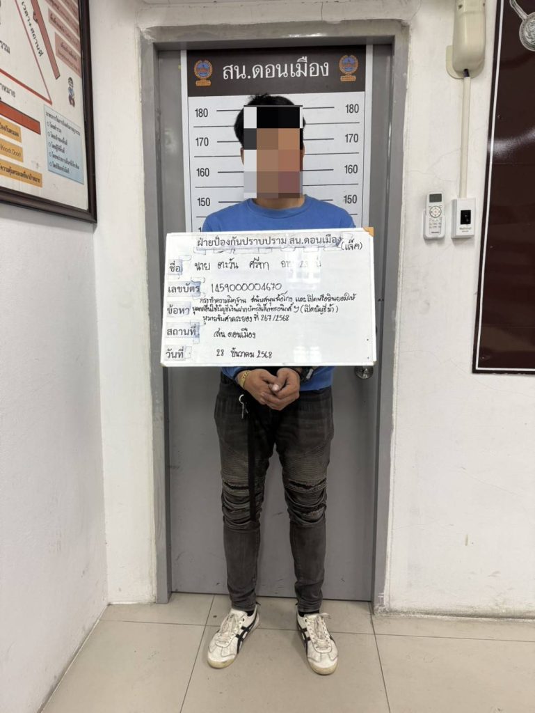 – วันที่ 28 ธ.ค. 2568 ( เวลาประมาณ 19.10 น.) ขณะที่เจ้าหน้าที่ตำรวจชุดจับกุม ได้จับกุมนาย ตะวัน ศรีทา (ทราบชื่อและนามสกุลจริงภายหลัง) ในข้อหา “พกพาอาวุธ(มีด)เข้ามาในเมืองหมู่บ้านทางสาธารณะโดยไม่มีเหตุอันควร” เมื่อเสียบบัตรประจำตัวประชาชนของนายตะวัน ศรีทา หมายเลขบัตรประจำตัวประชาชน 1459000004670 ผ่านระบบ CRIMES ปรากฏว่านาย ตะวัน ศรีทา มีหมายจับ ในข้อหา “สนับสนุนฉ้อโกง และเปิดหรือยินยอมให้บุคคลอื่นใช้บัญชีเงินฝากบัตรอิเล็กทรอนิกส์ของตนฯ”ตามหมายจับศาลจังหวัดระยอง ที่ 267/2568 ลงวันที่ พฤษภาคม 2568 จึงได้เชิญตัวนายตะวัน ศรีทา มาที่ห้องปฏิบัติการฝ่ายป้องกันและปราบปราม จากนั้นได้ประสานเจ้าหน้าที่ตำรวจ สภ.เมืองระยอง เพื่อสอบถามเกี่ยวกับหมายจับดังกล่าว ซึ่งเจ้าหน้าที่ตำรวจ สภ.เมืองระยอง ยืนยันว่าหมายจับดังกล่าวมีผลบังคับใช้และยังต้องการตัวอยู่ เจ้าหน้าที่ตำรวจชุดจับกุมจึงได้แสดงหมายจับดังกล่าวให้ นาย ตะวัน ฯ ดู และได้ยอมรับว่าตนเองเป็นบุคคลตามหมายจับฉบับนี้จริง และยังไม่เคยถูกจับกุมตามหมายจับฉบับนี้มาก่อนแต่อย่างใด หลังจากนั้นทางเจ้าหน้าที่ตำรวจชุดจับกุมจึงได้แจ้งข้อกล่าวหาให้นาย ตะวันฯ ตามหมายจับ ทราบว่าการกระทำดังกล่าวเป็นความผิดฐาน “สนับสนุนฉ้อโกง และเปิดหรือยินยอมให้บุคคลอื่นใช้บัญชีเงินฝากบัตรอิเล็กทรอนิกส์ของตนฯ” จึงได้แจ้งสิทธิ์ให้ทราบ ณ.สถานที่จับกุมแล้ว นายตะวันฯ ได้ใช้สิทธิ์แล้ว ในชั้นจับกุมนายตะวันฯ ให้การยอมรับว่าเป็นบุคคลตามหมายจับจริงและยังไม่เคยถูกจับกุมตามหมายจับนี้มาก่อนแต่อย่างใด หลังจากนั้นทางเจ้าหน้าที่ตำรวจชุดจับกุมจึงได้จัดทำบันทึกจับกุมและแจ้งสิทธิ์ให้ทราบอีกครั้ง จากนั้นจึงได้นำตัวส่งพนักงานสอบสวนสถานีตำรวจภูธรเมืองระยอง เพื่อดำเนินการตามกฎหมายต่อไป