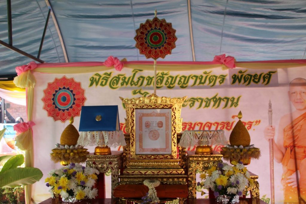 ภายในพิธีมีการประกาศพระบรมราชโองการ ตั้งพระครูสัญญาบัตร พระครูสุวรรณธรรมาจารย์, ดร. เจ้าอาวาสวัดโนนสะอาด โดยมีผู้แทนผู้บัญชาการมณฑลทหารบกที่ 27 พลตำรวจตรีวุฒิชัย จันโทภาส ผู้บังคับการตำรวจภูธรจังหวัดร้อยเอ็ด นายสมศักดิ์ สาโดด วัฒนธรรมจังหวัดร้อยเอ็ด นางจิราภรณ์ บุญโพธิ์ ผู้อำนวยการสำนักงานพระพุทธศาสนาจังหวัดร้อยเอ็ด นายอุบล รัตนพันธ์ นายกองค์การบริหารส่วนตำบลขอนแก่น ตลอดจนหัวหน้าส่วนราชการ และพุทธศาสนิกชนเข้าร่วมพิธีเป็นจำนวนมาก โดยได้รับเมตตาจากพระเทพวชิรคุณาธาร เจ้าคณะจังหวัดร้อยเอ็ด เป็นประธานฝ่ายสงฆ์