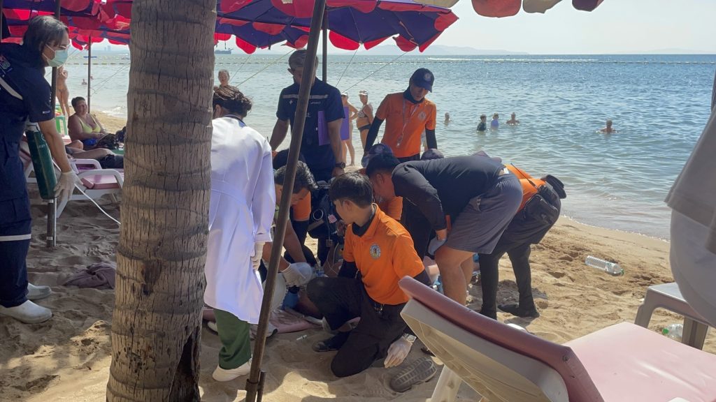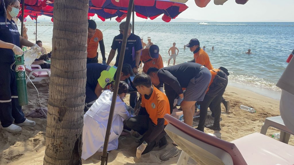 เจ้าหน้าที่ไลฟ์การ์ดประจำชายหาดจอมเทียน เมืองพัทยา เร่งเข้าช่วยเหลือด้วยการทำ CPR (ปั๊มหัวใจ) อย่างต่อเนื่อง ท่ามกลางความลุ้นระทึกของผู้ที่อยู่ในเหตุการณ์ กระทั่งผู้ประสบเหตุกลับมามีชีพจรอีกครั้ง ก่อนเจ้าหน้าที่เคลื่อนย้ายนำส่งโรงพยาบาลเมืองพัทยา เพื่อรักษาอย่างเร่งด่วน