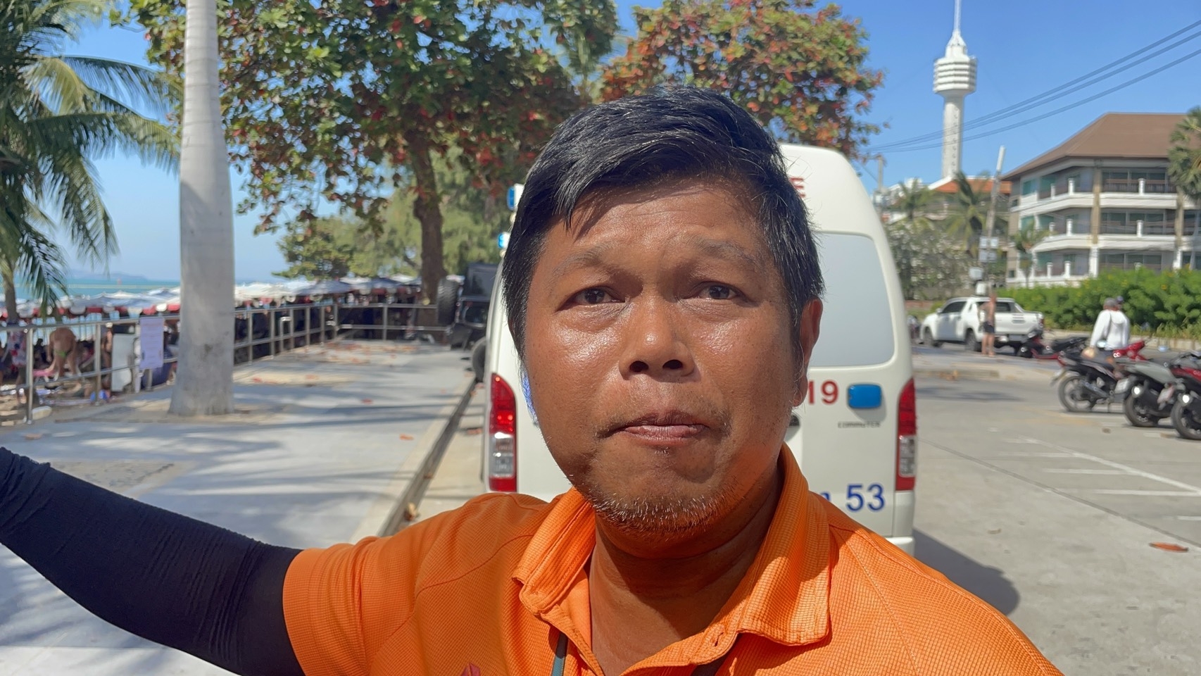ด้านนายธงชัย เที่ยงเจริญ เจ้าหน้าที่ไลฟ์การ์ด เปิดเผยว่า นักท่องเที่ยวรายดังกล่าว ลงเล่นน้ำบริเวณชายหาดโค้งดงตาล ก่อนเกิดอาการเป็นตะคริวทำให้จมน้ำ โชคดีมีพลเมืองดีช่วยนำร่างขึ้นมาบริเวณชายฝั่งได้ทัน เมื่อไปถึงตนตรวจเช็กแล้วไม่พบชีพจร จึงรีบทำการปั๊มหัวใจทันที พร้อมประสานรถพยาบาลระบบ Advanced Life Support (ALS) จากโรงพยาบาลเมืองพัทยา เข้าช่วยเหลือ ณ จุดเกิดเหตุ ก่อนนำตัวส่งโรงพยาบาลเพื่อรักษาต่อไป
