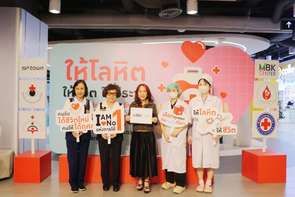 ศูนย์การค้าเอ็ม บี เค เซ็นเตอร์ ใส่ใจคุณภาพชีวิตที่ดีของคนไทย สานต่อการให้อย่างยั่งยืน ภายใต้แนวคิด MBK Care ร่วมกับ ศูนย์บริการโลหิตแห่งชาติ และ ศูนย์รับบริจาคอวัยวะ สภากาชาดไทย จัดกิจกรรม บริจาคโลหิต อวัยวะและดวงตา หนึ่งคนให้หลายคนรับ ครั้งที่ 20 ประจำปี 2568 โดยมี นางสาวสหัพย์ภัค โชควิจิตรกุล (ที่ 3 จากซ้าย) กรรมการผู้จัดการศูนย์การค้าเอ็ม บี เค เซ็นเตอร์ บริษัท เอ็มบีเค เซอร์วิส โซลูชั่น จำกัด ให้การต้อนรับคณะแพทย์ พยาบาล และเจ้าหน้าที่จากสภากาชาดไทย โดยมีผู้ลงทะเบียนบริจาค 119 ราย จำนวนโลหิตที่ได้รับ 92 ยูนิต ผู้บริจาคดวงตา อวัยวะและร่างกาย จำนวน 8 ราย ณ ชั้น 7 โซน A เมื่อเร็ว ๆ นี้