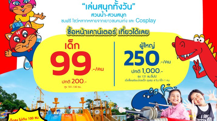 วันเด็กแห่งชาติปีนี้ สยามอะเมซิ่งพาร์ค เล่นใหญ่ จัดให้เที่ยวคุ้มสุดทั้งครอบครัว สนุกทั้งวันกับสวนน้ำและสวนสนุกไม่จำกัดรอบ โปรหน้าเคาน์เตอร์ลดจุก ๆ ซื้อแล้วเที่ยวได้เลย เด็ก (สูง 101-130 ซม.) เพียง 99.- (ปกติ 200.-) , ผู้ใหญ่ (131 ซม. ขึ้นไป) เพียง 250.- (ปกติ 1,000.-) เมื่อซื้อพร้อมบัตรเด็ก สูงสุดผู้ใหญ่ 4 ใบ/เด็ก 1 คน , เด็กสูงต่ำกว่า 100 ซม. และผู้สูงอายุ 60 ปีขึ้นไป เที่ยวฟรี !! พิเศษสุดสัปดาห์วันเด็กแห่งชาติ เสาร์-อาทิตย์ 10-11 มกราคม 2569 มาเที่ยวกัน!!