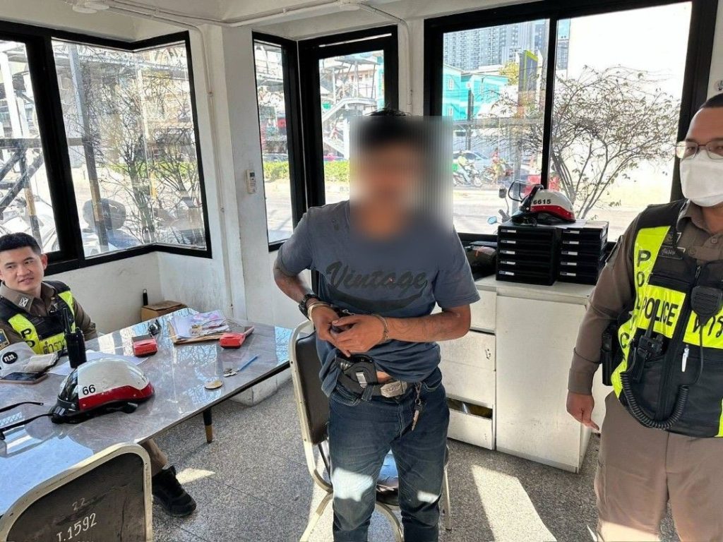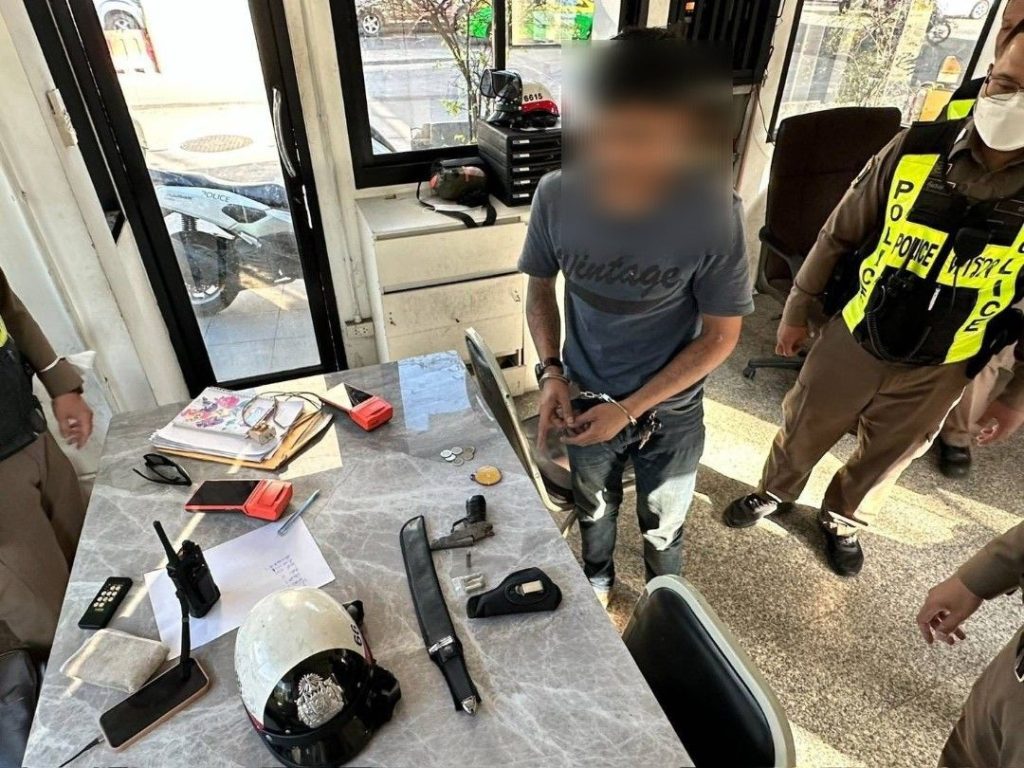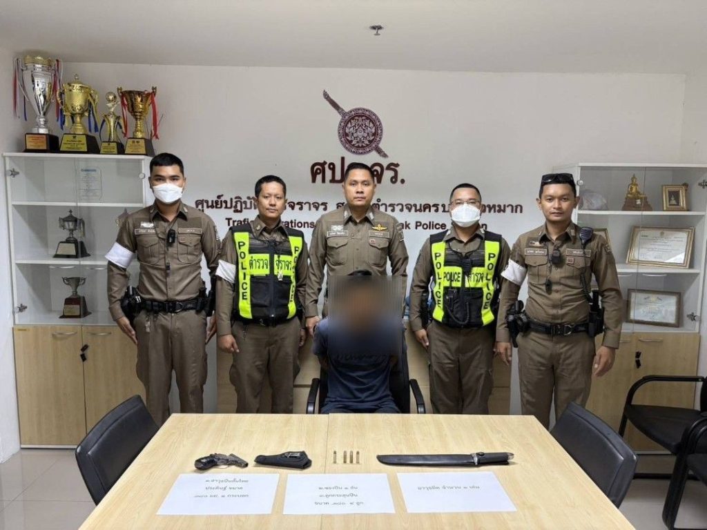 ตำรวจจราจร สน.หัวหมาก รวบหนุ่มโคราชพกปืนไทยประดิษฐ์และมีดคาสี่แยกลำสาลี