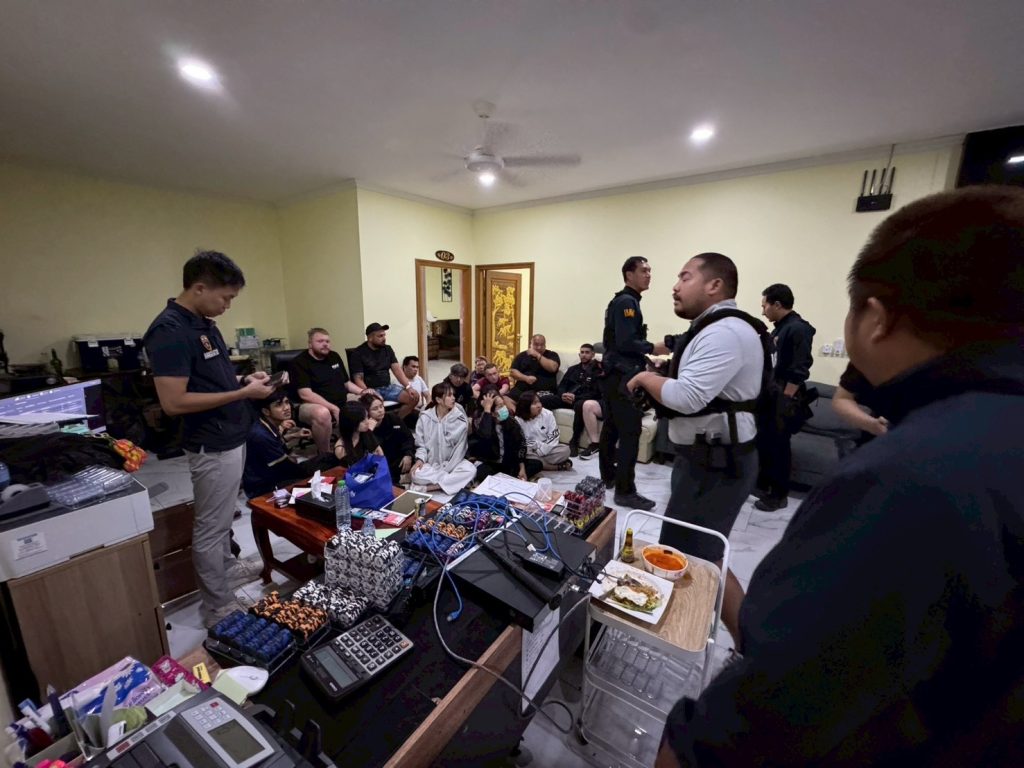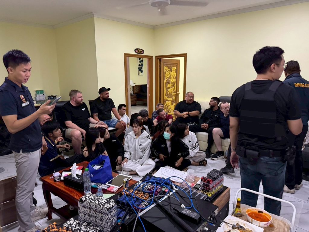 สตม.เปิดปฏิบัติการกลางดึก ทลายบ่อนโป๊กเกอร์กลางเมืองชล รวบนักพนักหลายสัญชาตินับสิบราย