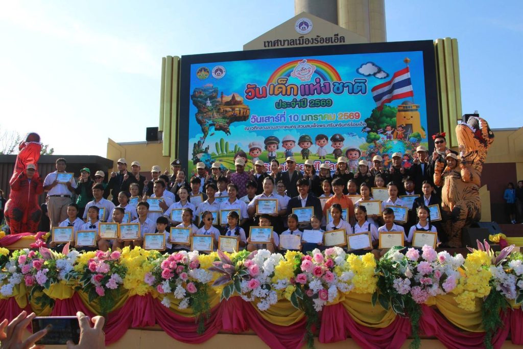 วันเสาร์ที่ 10 มกราคม 2569 เวลา 08.00 น. นายชัชวาลย์ เบญจสิริวงศ์ ผู้ว่าราชการจังหวัดร้อยเอ็ดเป็นประธานเปิดงานวันเด็กแห่งชาติ ประจำปี 2569 จังหวัดร้อยเอ็ด ณ เวทีลานสาเกตนคร สวนสมเด็จพระศรีนครินทร์ร้อยเอ็ด โดยมี นางสาวปราณี วงศ์บุตร นายพิชัยยา ตุระซอง และนายนันทวิทย์ นาคแสง รองผู้ว่าราชการจังหวัดร้อยเอ็ด พร้อมด้วยหัวหน้าส่วนราชการ ผู้แทนจากหน่วยงานภาครัฐ ภาคเอกชน ประชาชน และนักเรียนและเยาวชน เข้าร่วมงานเป็นจำนวนมาก การจัดงานในปีนี้ จังหวัดร้อยเอ็ดจัดขึ้นโดยความร่วมมือของส่วนราชการ สถานศึกษา หน่วยงาน ทั้งภาครัฐและเอกชน รวมไปถึงบริษัทห้างร้านต่าง ๆ ในจังหวัดร้อยเอ็ด เพื่อให้เด็กและเยาวชนได้แสดงออกทั้งในด้านความรู้ ความสามารถ ความสนุกสนาน อีกทั้งยังได้รับประสบการณ์ตรงและการมีส่วนร่วมอย่างสร้างสรรค์ โดยจัดให้มีการประกวดการจัดร้านนิทรรศการของสถานศึกษา การออกร้านของหน่วยงานต่าง ๆ และส่วนราชการ ภาครัฐ ภาคเอกชน รวมถึงมีกิจกรรมให้เด็กและเยาวชนได้ร่วมสนุกจากเครื่องเล่นต่าง ๆ