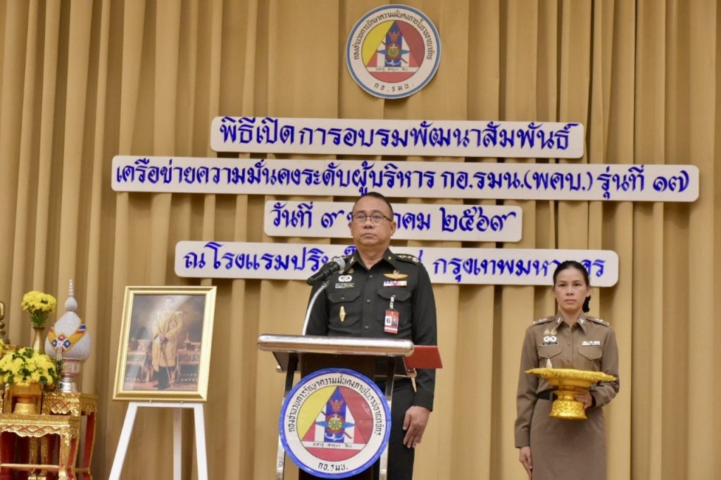 เมื่อวันที่ 9 มกราคม 2568 ที่ห้องราชา 2 โรงแรมปริ้นซ์ พาเลซ กรุงเทพฯ กองอำนวยการรักษาความมั่นคงภายในราชอาณาจักร (กอ.รมน.) โดยสำนักกิจการมวลชนและสารนิเทศ กอ.รมน. จัดพิธีเปิดการอบรมพัฒนาสัมพันธ์เครือข่ายความมั่นคงระดับผู้บริหาร กอ.รมน. (พคบ.) รุ่นที่ 17 โดยมี พล.ท.โดมหทัย ปั้นทองพันธุ์ รองเลขาธิการ กอ.รมน. เป็นประธานในพิธี พร้อมด้วย พลโท ธนาธิป สว่างแสง หรือ “เสธ.หนึ่ง” ผู้อำนวยการสำนักกิจการมวลชนและสารนิเทศ (ผอ.สมท.) และผู้บริหาร กอ.รมน. ตลอดจนผู้แทนจากหน่วยงานภาครัฐ ภาคเอกชน และรัฐวิสาหกิจ เข้าร่วมอย่างพร้อมเพรียง