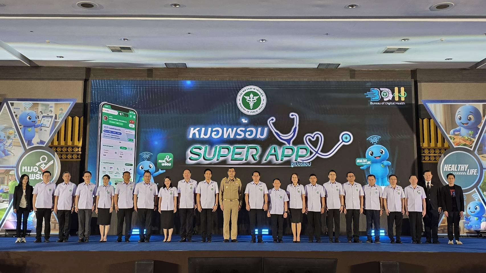 วันที่ 12 ม.ค. 2569 ที่ห้องแกรนด์ ไดมอนด์ บอลรูม อาคารอิมแพค ฟอรัม เมืองทองธานี จังหวัดนนทบุรี นายพัฒนา พร้อมพัฒน์ รัฐมนตรีว่าการกระทรวงสาธารณสุข เป็นประธานเปิดงาน Kick Off โครงการ “หมอพร้อม SUPER APP” หรือ “กระเป๋าสุขภาพดิจิทัล” แพลตฟอร์มเชื่อมโยงบริการทางการแพทย์ทั้งระบบ ภายใต้นโยบายเร่งยกระดับระบบบริการสุขภาพของประเทศ