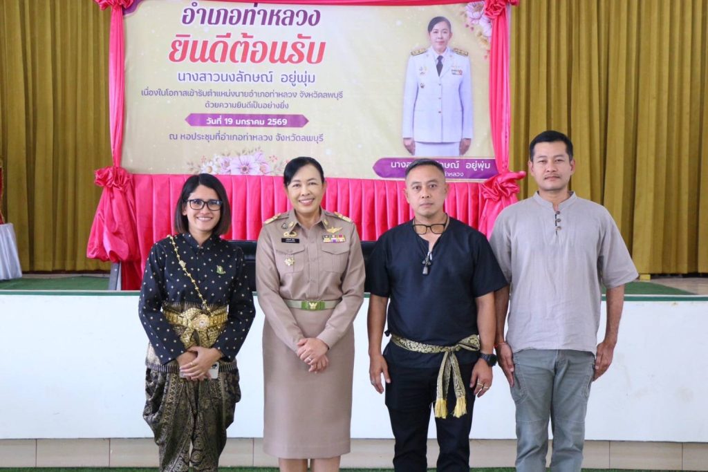 วันจันทร์ที่ 19 มกราคม 2569 เวลา 11.00 น. นางสาวประคอง สุระเทศ ปลัดอำเภอหัวหน้ากลุ่มงานบริหารงานปกครองอำเภอท่าหลวงได้นำหัวหน้าส่วนราชการอำเภอท่าหลวง เจ้าหน้าที่ กำนัน ผู้ใหญ่บ้าน นายกองค์กรปกครองส่วนท้องถิ่น ฯลฯ ร่วมให้การต้อนรับและแสดงความยินดีแด่ นางสาวนงลักษณ์ อยู่พุ่ม นายอำเภอท่าหลวง ที่ย้ายมาดำรงค์ตำแหน่งท่านใหม่เนื่องในโอกาสเดินทางมารับตำแหน่ง “นายอำเภอท่าหลวง” จังหวัดลพบุรี