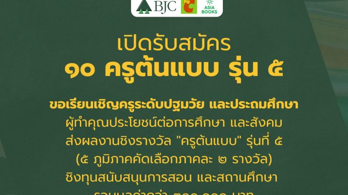 กลุ่มบีเจซี บิ๊กซี เปิดรับสมัคร “ครูต้นแบบ รุ่นที่ 5” เฟ้นหา 10 ครูต้นแบบจาก 5 ภูมิภาค ชิงทุนสนับสนุนการสอนและสถานศึกษา รวมมูลค่ากว่า 300,000 บาท
