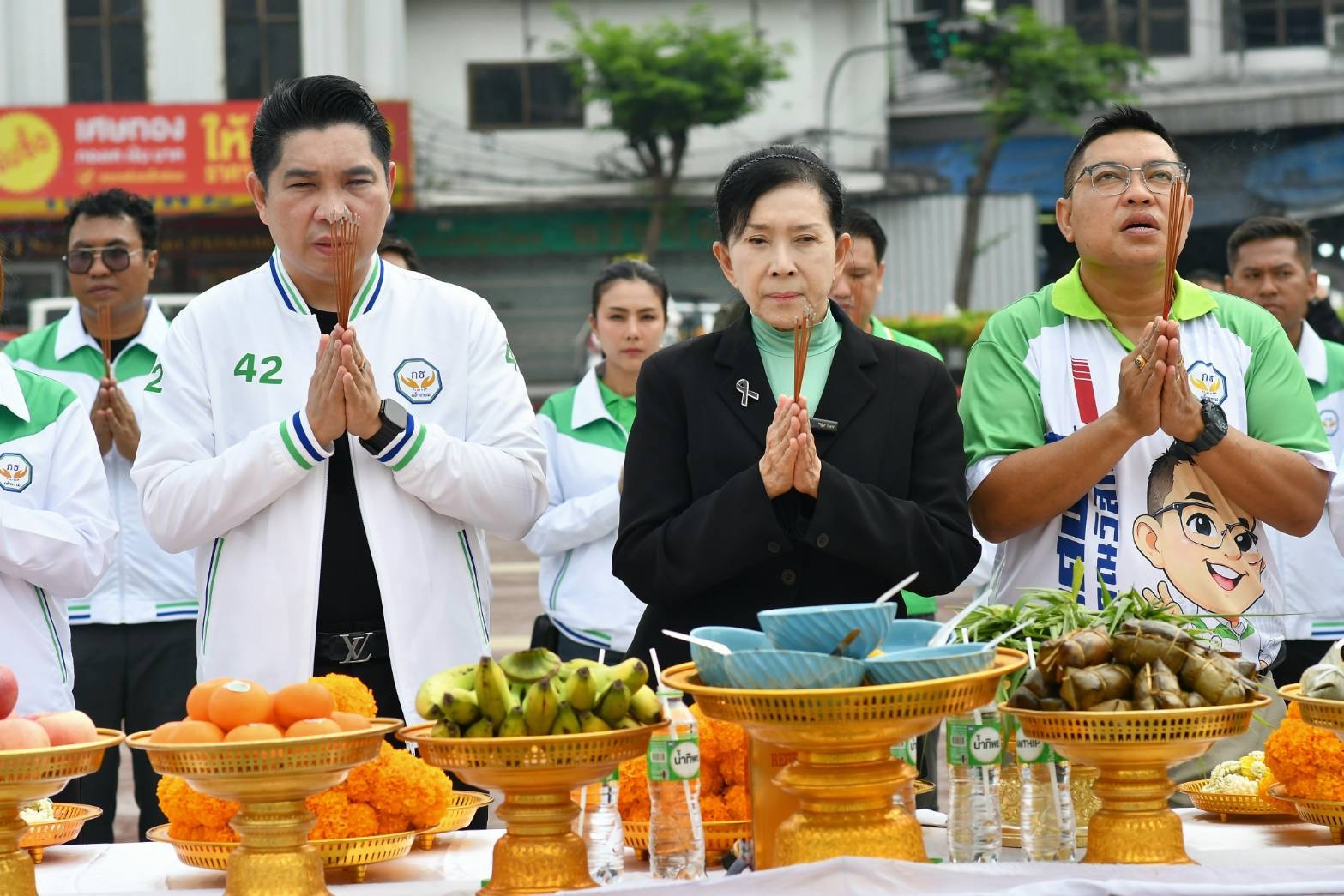 จากนั้นเดินทางไปยังตลาดท่าดินแดง พบปะพ่อค้าแม่ค้าและพี่น้องประชาชนที่มาจับจ่ายซื้อของ ก่อนจะไปที่วัดหนังราชวรวิหาร เข้ากราบสักการะ”หลวงปู่เอี่ยม” และพบปะพี่น้องประชาชนชุมชนริมคลองหลังวัดหนังฯ วัดนางนอง เพื่อพูดคุยรับฟังปัญหาและประชาสัมพันธ์นโยบายของพรรคกล้าธรรมที่เดินหน้าแก้ปัญหาสังคม ยาเสพติด รวมถึงหนี้นอกระบบที่เป็นปัญหาใหญ่ในขณะนี้ และปัญหาปากท้องพี่น้องประชาชนเพื่อให้มีชีวิตความเป็นอยู่ที่ดีขึ้น ทำให้สังคมเข้มแข็งและปลอดภัย