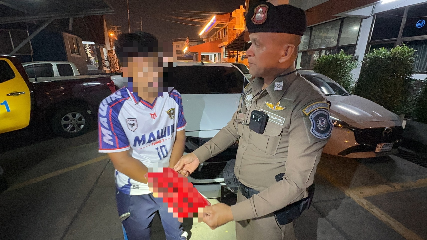 เมื่อเวลา 20.00 น. วันที่ 21 มกราคม 2569 เจ้าหน้าที่ตำรวจทางหลวงอยุธยา ได้ออกตรวจพื้นที่ในเขตรับผิดชอบของ กองกำกับการ 1 กองบังคับการตำรวจทางหลวง บนถนนพหลโยธิน พบเห็นรถยนต์กระบะ ยี่ห้อ อีซูซุ ดีแมคซ์ ออนิว สีขาว ติดแผ่นป้ายหมายเลขทะเบียน ( ป้ายแดง ) ย 4522 กรุงเทพมหานคร ขับขี่ผ่านมา ต้องสงสัยใช้แผ่นป้ายแดงที่ไม่ถูกต้องและเกินกว่าที่กฎหมายกำหนด เจ้าหน้าที่ตำรวจได้ส่งสัญญาณไฟกระพริบสีแดงและใช้สัญญาณเสียงรวมถึงการพูดออกคำสั่งผ่านไมโครโฟนเรียกรถยนต์คันดังกล่าวให้หยุด